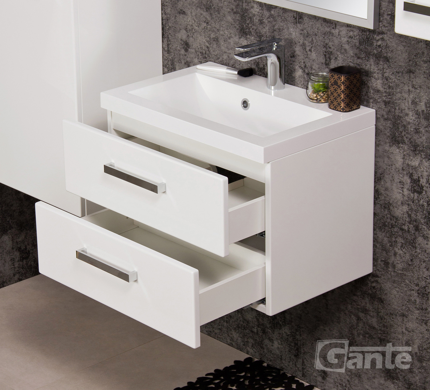 FOCUS is our main line of vanity units. Simple in form yet with endless possibilities. The ergonomic handle combines a modern accent with classic elegance in the furniture. Various basins shapes emphasize the distinctive design of the furniture. Furniture from the FOCUS line is made of MDF covered with high-quality furniture foil, thanks to which bathroom furniture has increased resistance to moisture. The cabinets are equipped with practical shelves and storage drawers. A wide range of colors and sizes allows you to adjust the furniture to each bathroom. In this line, you have a choice of single, double and triple drawers vanity units in all typical widths plus shelves, cabinets, tall storage units, mirrors, and others.