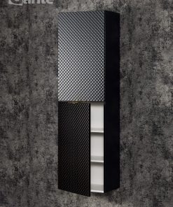 Glow is a line of exclusive, unusual bathroom furniture with modern aesthetics and made of innovative materials. The bodies are made of durable boards covered with matte black furniture foil, while the doors and drawer fronts are made of tempered glass with a distinct structure, embedded in an aluminum frame. The design is complemented by black or gold furniture handles, as well as a dolomite washbasin with a pattern clearly referring to the finish of the furniture fronts. Such a selection of materials makes the Glow bathroom furniture a perfect complement to the design of modern bathrooms. Their aesthetics make them practically unmatched on the market and will undoubtedly decorate any interior. Modern, expressive colors, unusual materials and design make this line of bathroom furniture an ideal alternative for those bathrooms where it is necessary to clearly emphasize the extraordinary character of the interior.