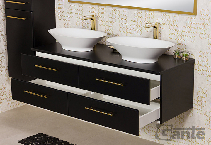 In Belli Gold bathroom furniture, a refined, attractive design goes hand in hand with technical excellence and precision of workmanship, which guarantees many years of trouble-free use. The body of the furniture is made of the highest quality furniture boards, secured with a great-looking, moisture-resistant, and mechanical-damage-resistant matt furniture foil. The hinges and guides in all doors and drawers are equipped with a soft-close system. The precisely machined handles are free from sharp edges, and their fixings are very stable and properly seated. Hanging cabinets are constructed in such a way as to withstand even significant loads and the high quality of finishing means that the Belli Gold series furniture for years does not show any serious signs of wear. It is a special series of bathroom furniture that has been designed and constructed for investors who appreciate above-average quality, but who want each bathroom to have its charm and character.