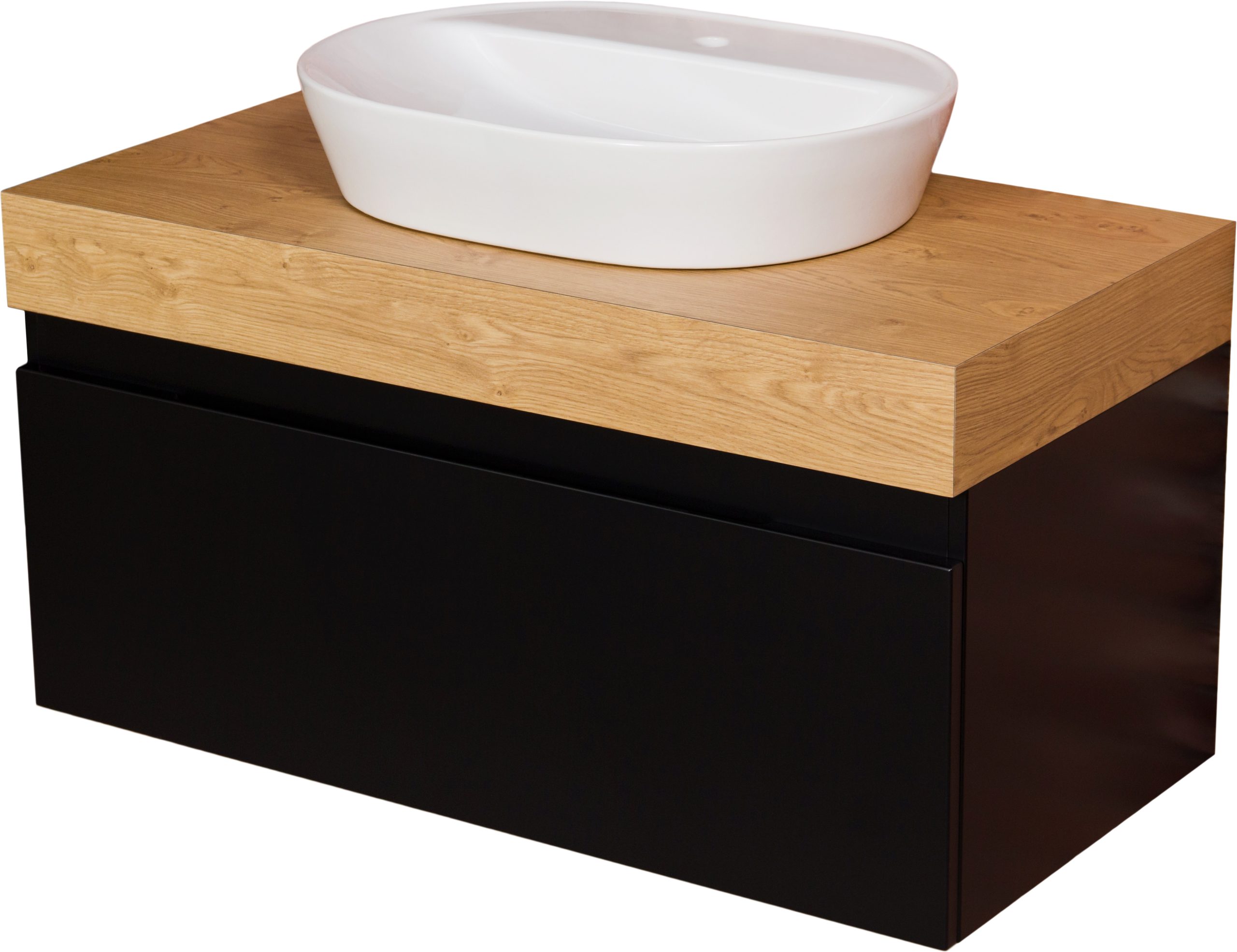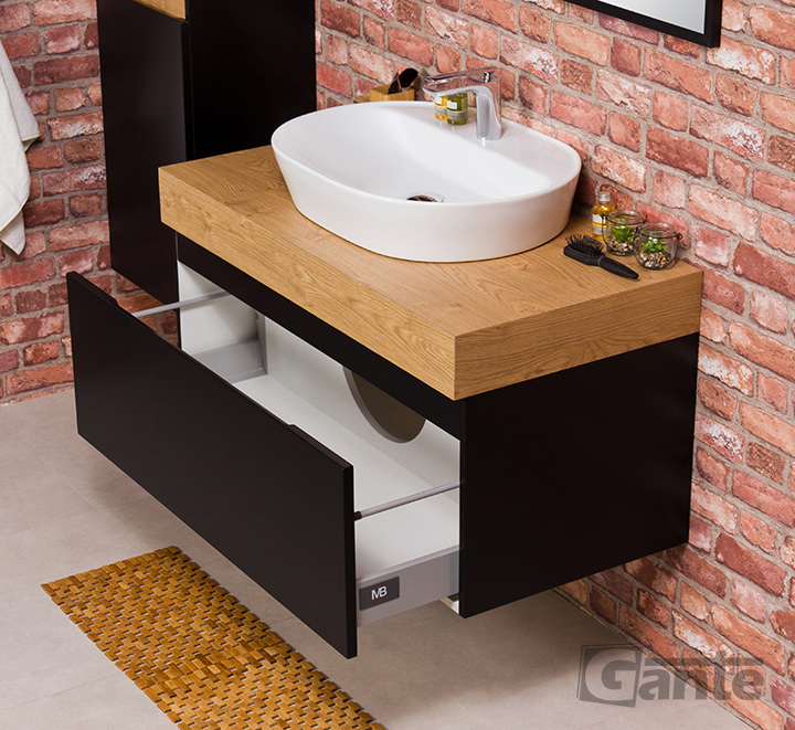In addition to the unusual aesthetics, there is also huge functionality. Both vanity units and cabinets are very roomy. The ergonomic spacing of shelves, spacious, wide drawers and a large space available inside the units are their huge advantages. Instead of the classic handles in the Cassini series, grooved handles were used, which not only look good but also provide very good comfort. Both doors and drawers are standard equipped with a silent closing system, while the highest quality materials have been used to finish all surfaces. The bodies are made of foiled MDF board, while the tops are finished with laminates of the highest quality, ensuring full water resistance and maximum protection against mechanical damage.