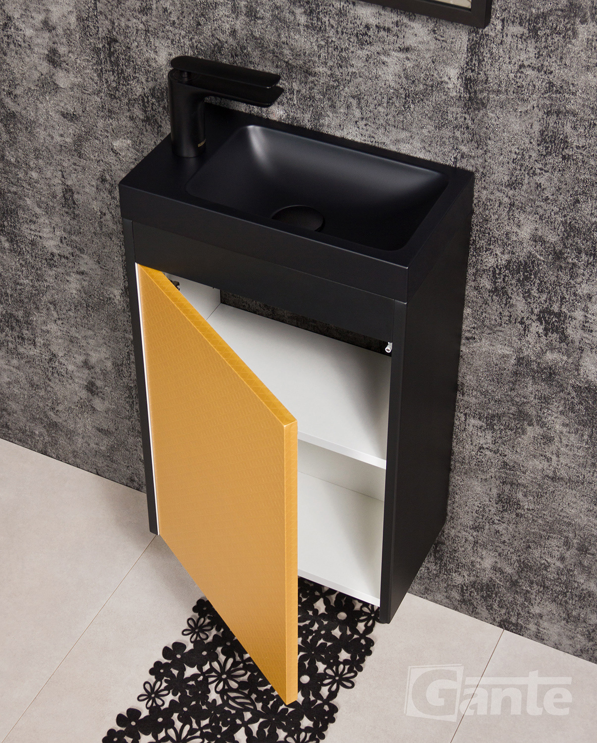 The Cler line of bathroom furniture is intended primarily for small bathrooms or en-suites, where there is no room for standard furniture sets. It is small but ergonomic furniture, designed to make maximum use of very limited space. Simple shapes, devoid of classic handles, which have been replaced by well-profiled grooves, and the whole idea is completed by actuators in tilt cabinets or push to open system. It is a safe, modern, and practical solution. The main idea of the project is aesthetic functionality. Despite its small dimensions, the cabinets from this line will fit even tall containers with cosmetics. This is due to a properly designed door that, when tilted, provides convenient access to the entire space in the cabinet. All elements of the set are resistant to moisture. The MDF board covered with furniture foil ensures extended service life and durability of aesthetic effects. The Cler series is available in many colours. One-colour furniture is finished in a high gloss, which adds charm to it, and also allows you to optically brighten the bathroom. In this cabinet you can have a tap on right or left side.