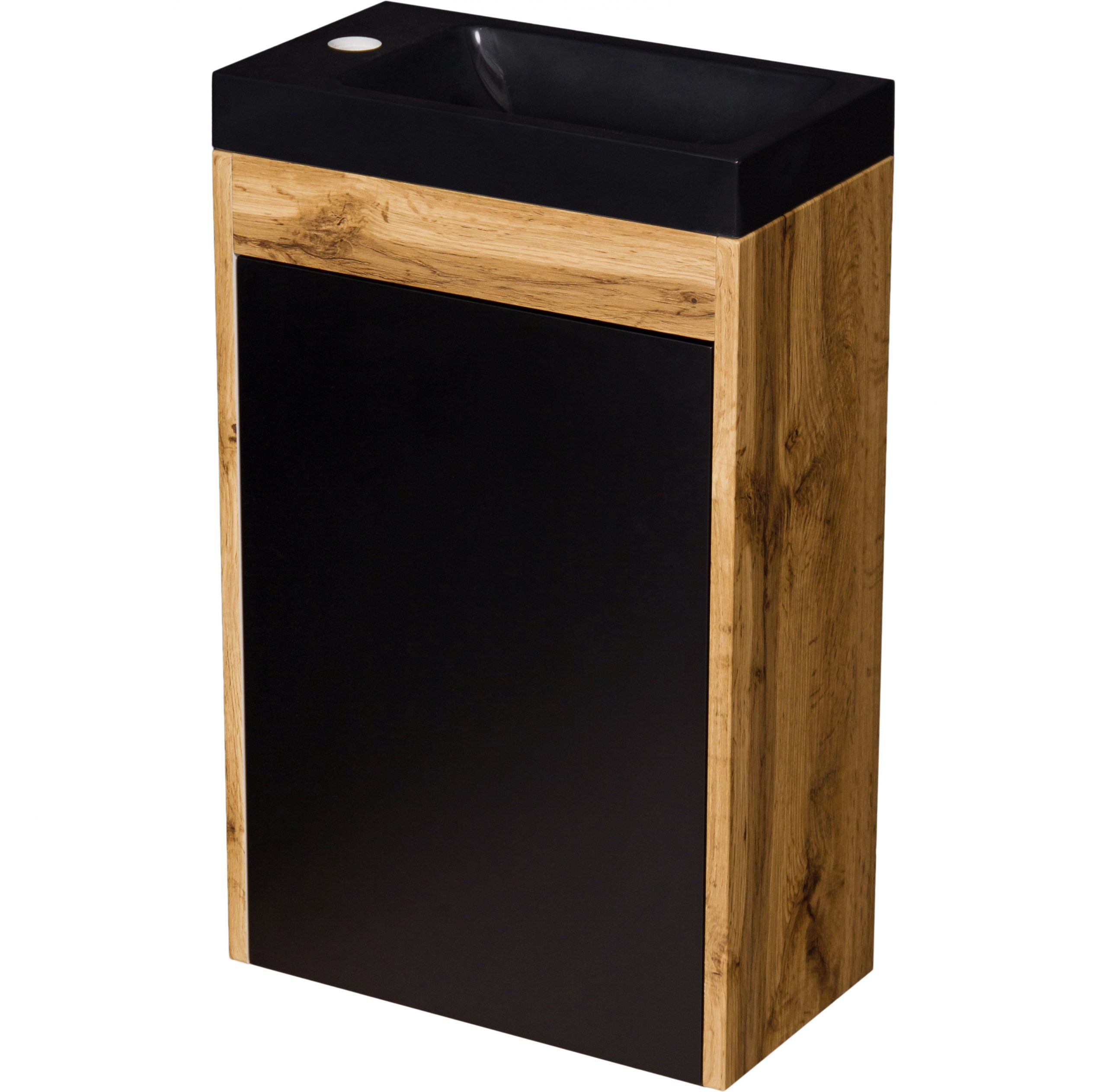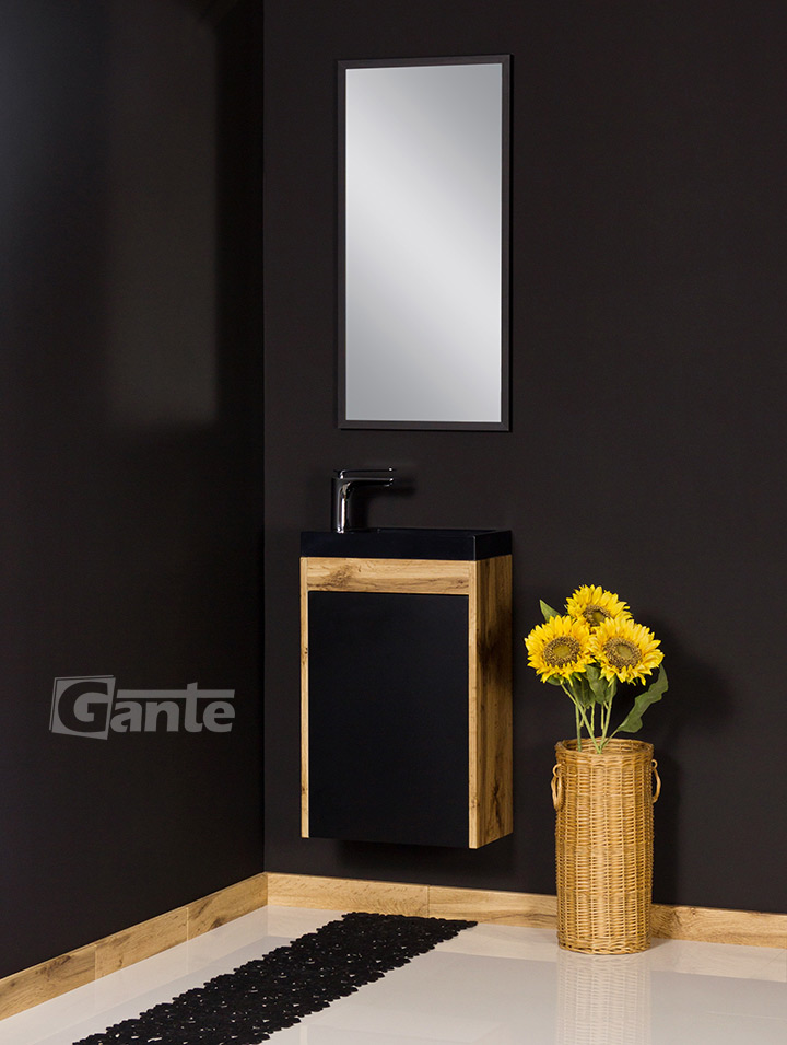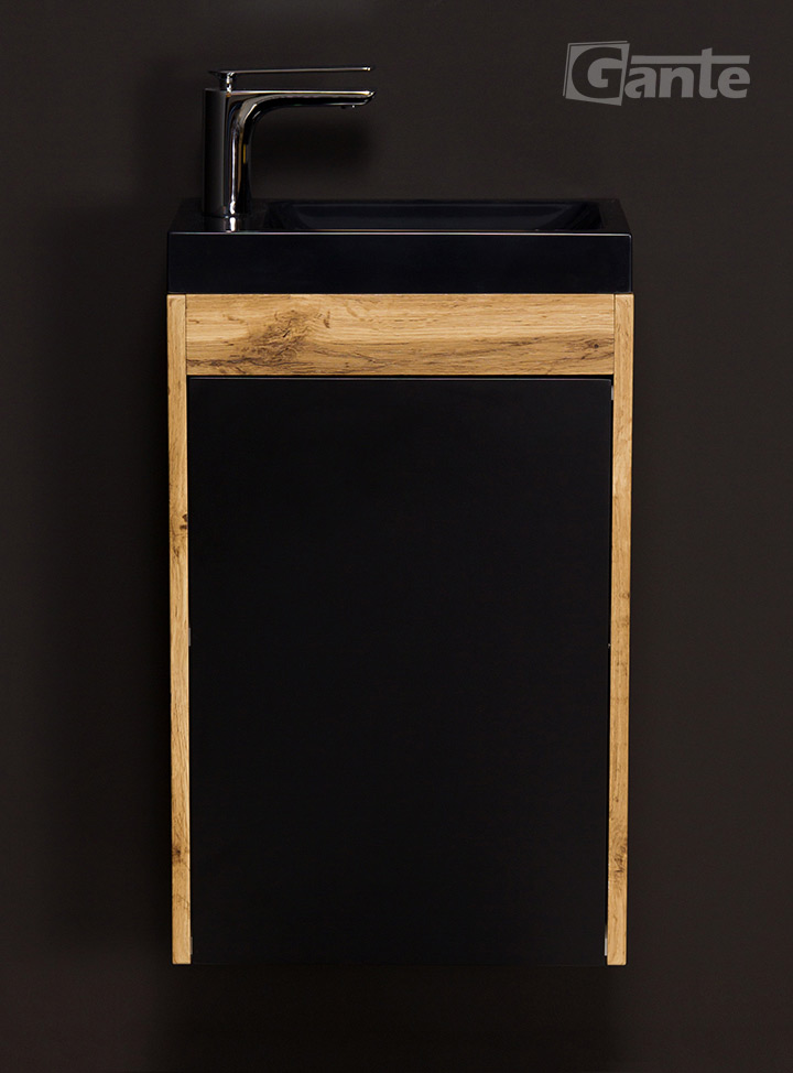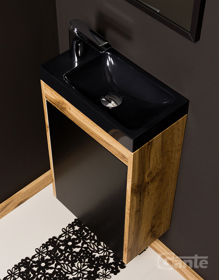 The Cler line of bathroom furniture is intended primarily for small bathrooms or en-suites, where there is no room for standard furniture sets. It is small but ergonomic furniture, designed to make maximum use of very limited space. Simple shapes, devoid of classic handles, which have been replaced by well-profiled grooves, and the whole idea is completed by actuators in tilt cabinets or push to open system. It is a safe, modern, and practical solution. The main idea of the project is aesthetic functionality. Despite its small dimensions, the cabinets from this line will fit even tall containers with cosmetics. This is due to a properly designed door that, when tilted, provides convenient access to the entire space in the cabinet. All elements of the set are resistant to moisture. The MDF board covered with furniture foil ensures extended service life and durability of aesthetic effects. The Cler series is available in many colours. One-colour furniture is finished in a high gloss, which adds charm to it, and also allows you to optically brighten the bathroom. In this cabinet you can have a tap on right or left side.