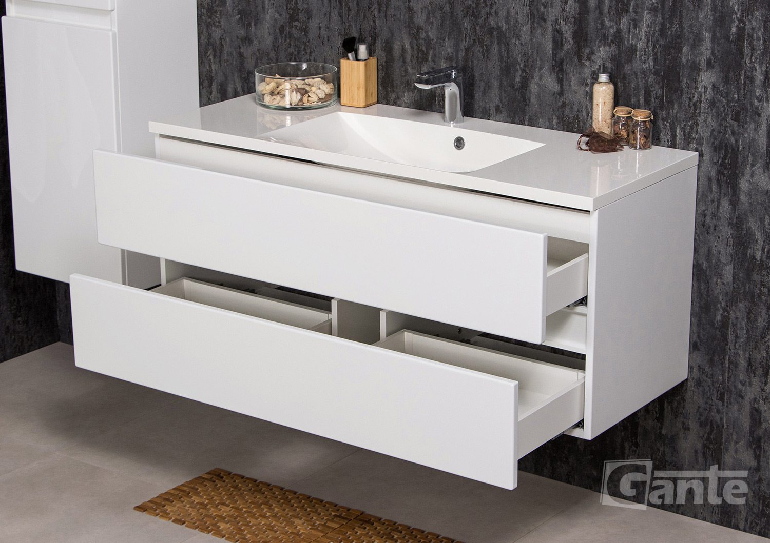 - Basin must be attached to the cabinet using silicone