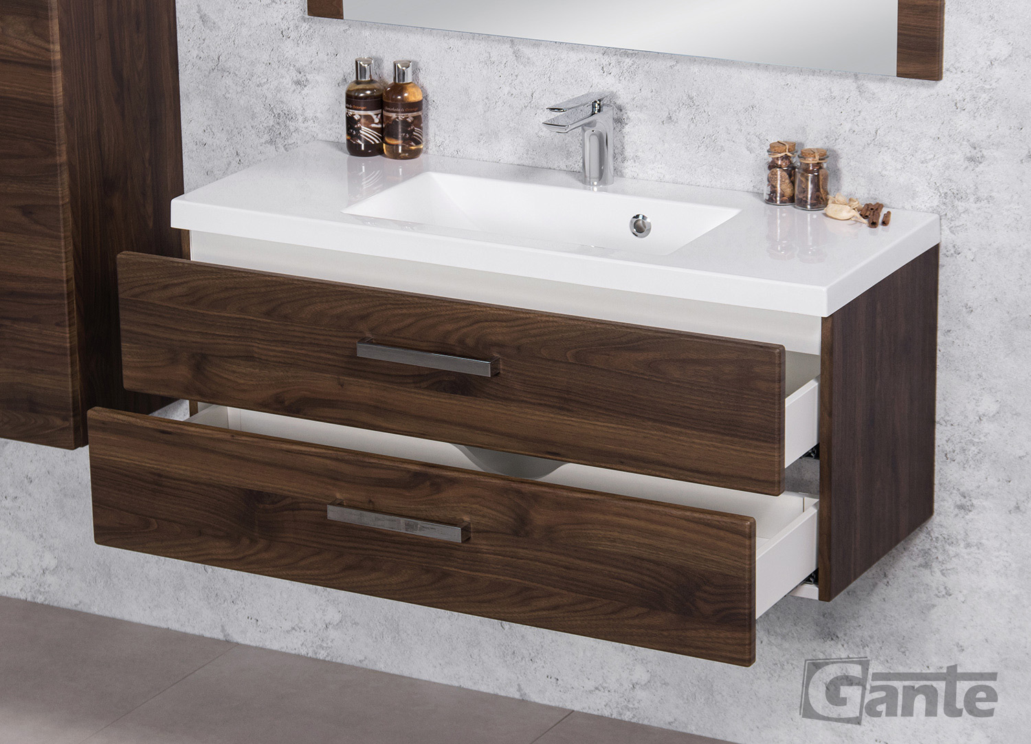 In this line, we have 7 colours for vanity units (antique wood, white, black, red, gray, oak, wenge matt) plus 2 colours for basins- white and black.