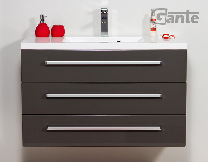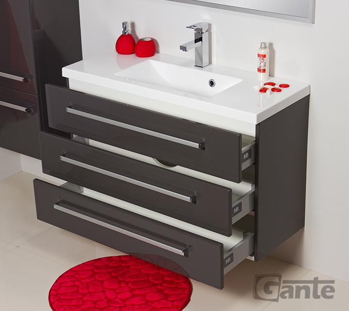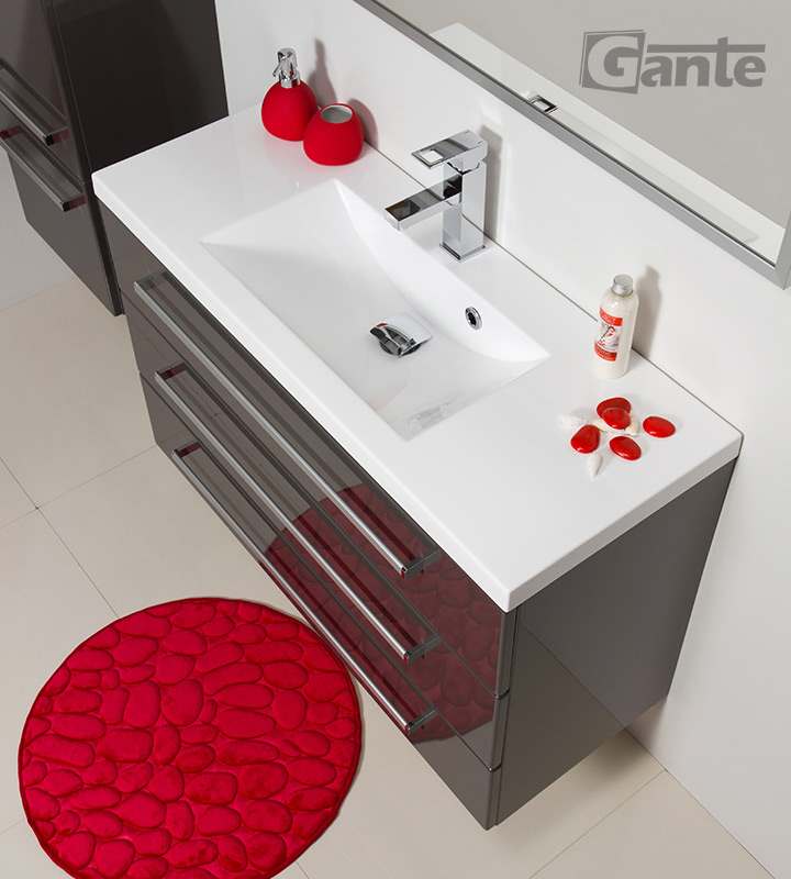 In this line, we have 9 colours for vanity units (antique wood, white, black, red, gray, gray fino, oak, wenge mat, and gloss) plus 4 colours for basins- white, black, red and gray