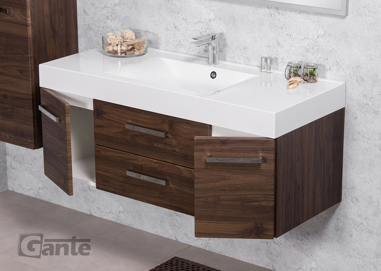 In this line, we have 9 colours for vanity units (antique wood, white, black, red, gray, gray fino, oak, wenge mat, and gloss) plus 4 colours for basins- white, black, red and gray