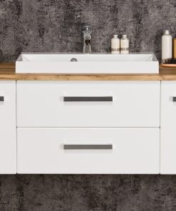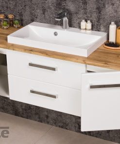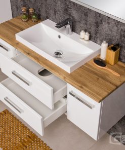 FOCUS is our main line of vanity units. Simple in form yet with endless possibilities. The ergonomic handle combines a modern accent with classic elegance in the furniture. Various basins shapes emphasize the distinctive design of the furniture. Furniture from the FOCUS line is made of MDF covered with high-quality furniture foil, thanks to which bathroom furniture has increased resistance to moisture. The cabinets are equipped with practical shelves and storage drawers. A wide range of colors and sizes allows you to adjust the furniture to each bathroom. In this line, you have a choice of single, double and triple drawers vanity units in all typical widths plus shelves, cabinets, tall storage units, mirrors, and others.