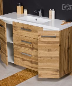 In this line, we have 9 colours for vanity units (antique wood, white, black, red, gray, gray fino, oak, wenge mat, and gloss) plus 4 colours for basins- white, black, red and gray