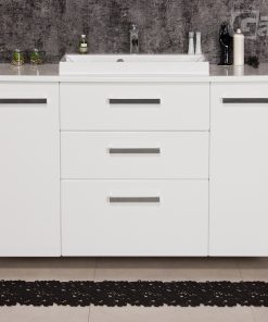 FOCUS is our main line of vanity units. Simple in form yet with endless possibilities. The ergonomic handle combines a modern accent with classic elegance in the furniture. Various basins shapes emphasize the distinctive design of the furniture. Furniture from the FOCUS line is made of MDF covered with high-quality furniture foil, thanks to which bathroom furniture has increased resistance to moisture. The cabinets are equipped with practical shelves and storage drawers. A wide range of colors and sizes allows you to adjust the furniture to each bathroom. In this line, you have a choice of single, double and triple drawers vanity units in all typical widths plus shelves, cabinets, tall storage units, mirrors, and others.