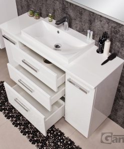 In this line, we have 7 colours for vanity units (antique wood, white, black, red, gray, oak, wenge matt) plus 2 colours for basins- white and black.