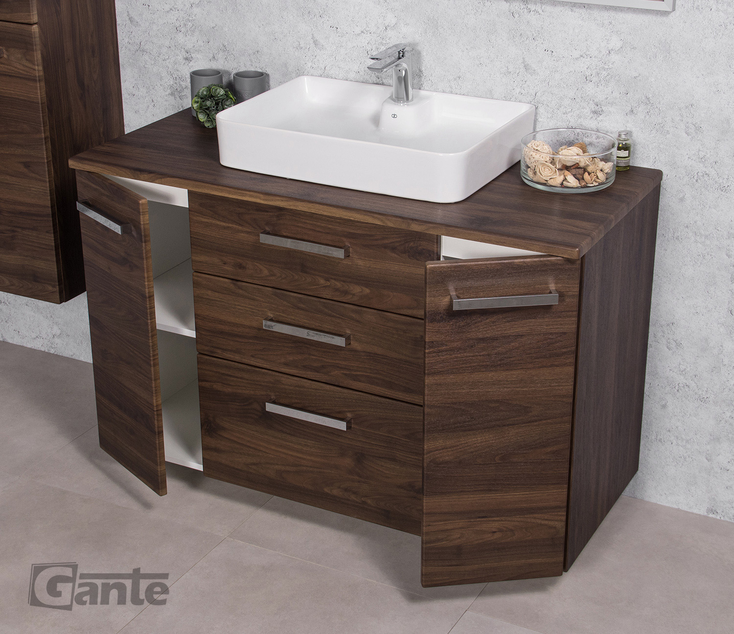 In this line, we have 7 colours for vanity units (antique wood, white, black, red, gray, oak, wenge matt) plus 2 colours for basins- white and black.