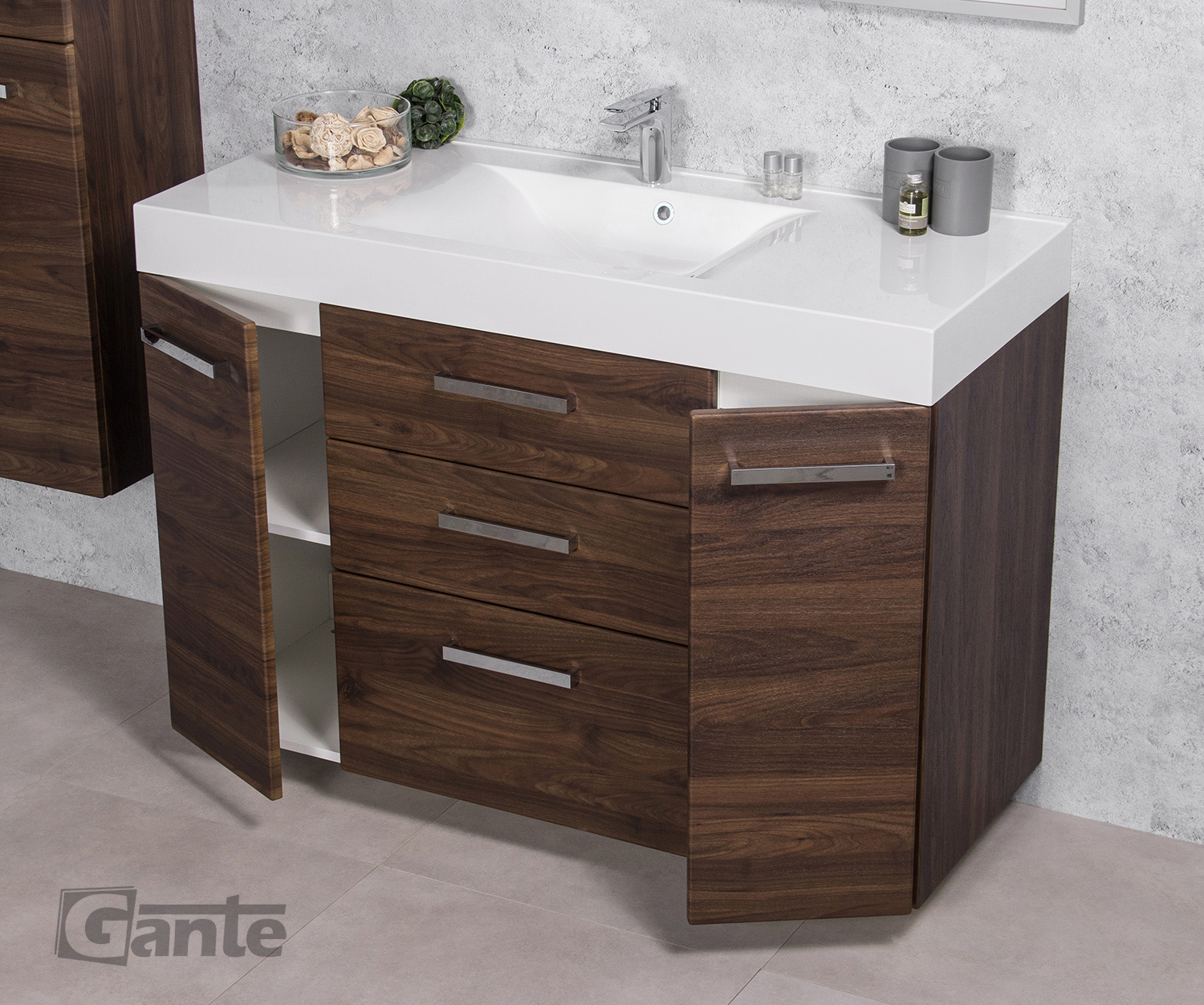 In this line, we have 9 colours for vanity units (antique wood, white, black, red, gray, gray fino, oak, wenge mat, and gloss) plus 4 colours for basins- white, black, red and grey