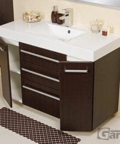 In this line, we have 9 colours for vanity units (antique wood, white, black, red, gray, gray fino, oak, wenge mat, and gloss) plus 4 colours for basins- white, black, red and grey