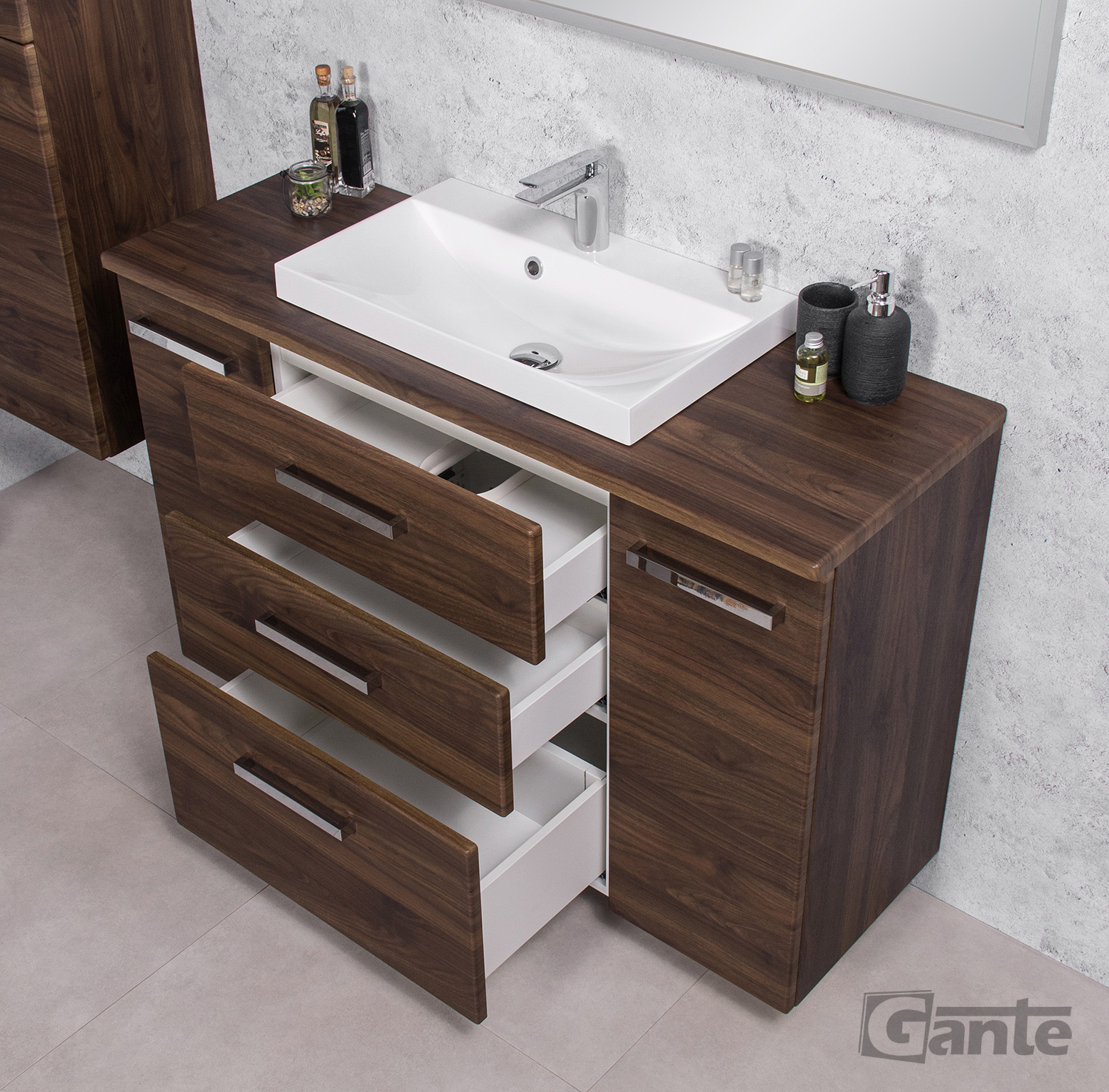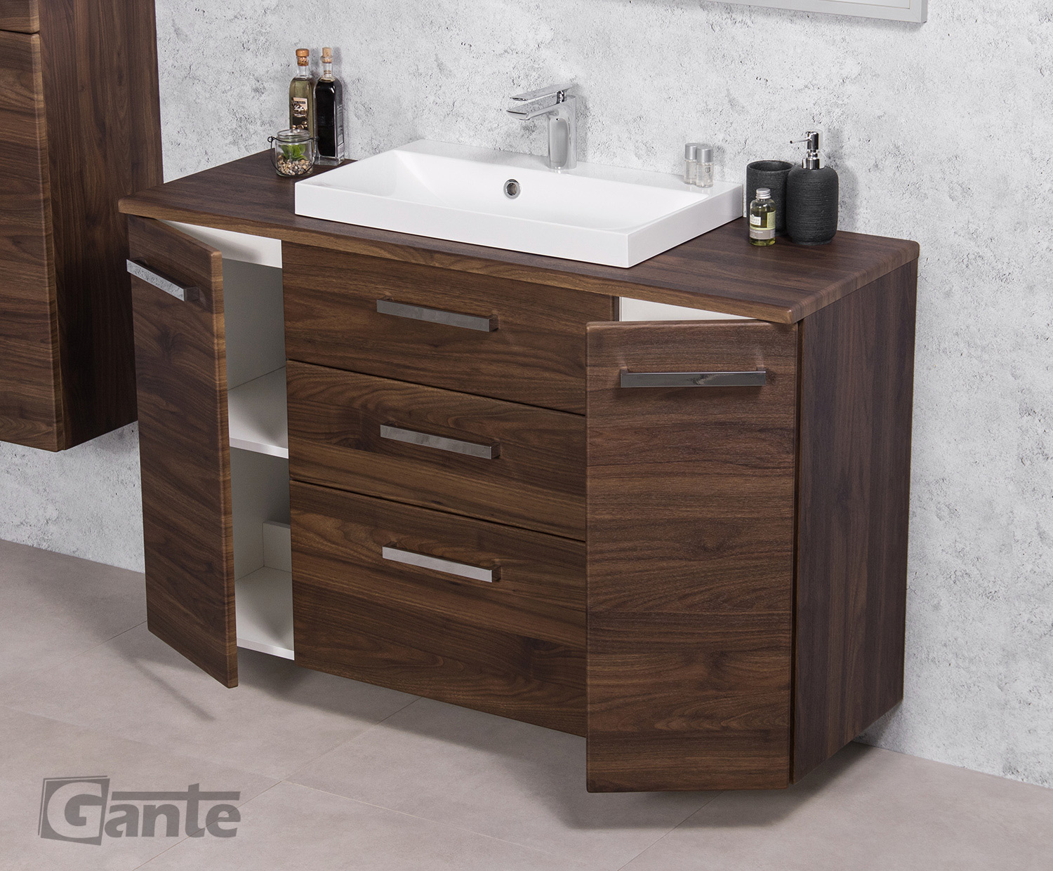 FOCUS is our main line of vanity units. Simple in form yet with endless possibilities. The ergonomic aluminum handle combines a modern accent with classic elegance in the furniture. Various basins shapes emphasize the distinctive design of the furniture. Furniture from the FOCUS line is made of MDF covered with high-quality furniture foil, thanks to which bathroom furniture has increased resistance to moisture. The cabinets are equipped with practical shelves and storage drawers. A wide range of colors and sizes allows you to adjust the furniture to each bathroom. In this line, you have a choice of single and double and triple drawers vanity units in all typical widths plus shelves, cabinets, tall storage units, mirrors, and others.
