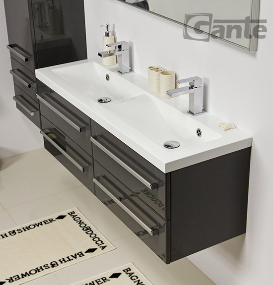 In this line, we have 9 colours for vanity units (antique wood, white, black, red, gray, gray fino, oak, wenge mat, and gloss) plus 4 colours for basins- white, black, red and gray
