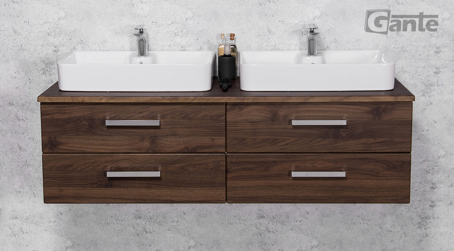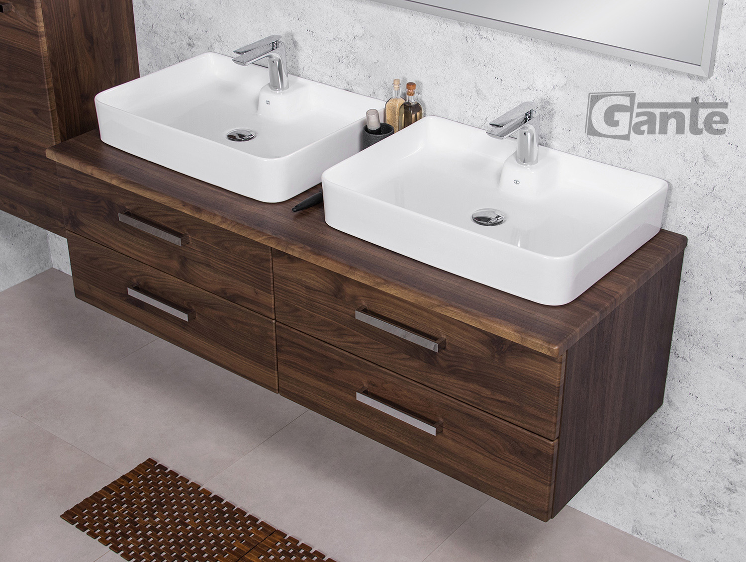 In this line, we have 7 colours for vanity units (antique wood, white, black, red, gray, oak, wenge matt) plus 2 colours for basins- white and black.