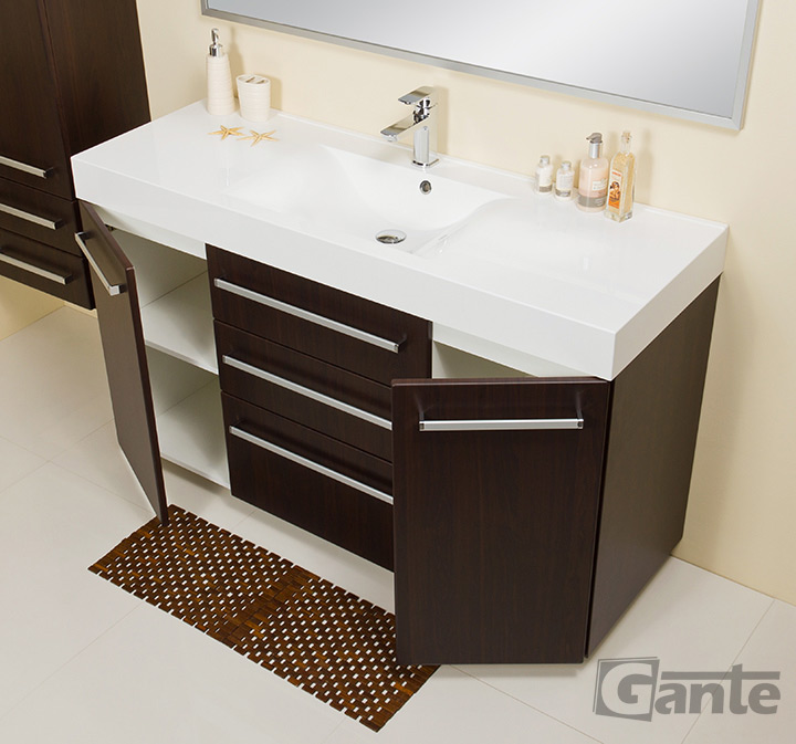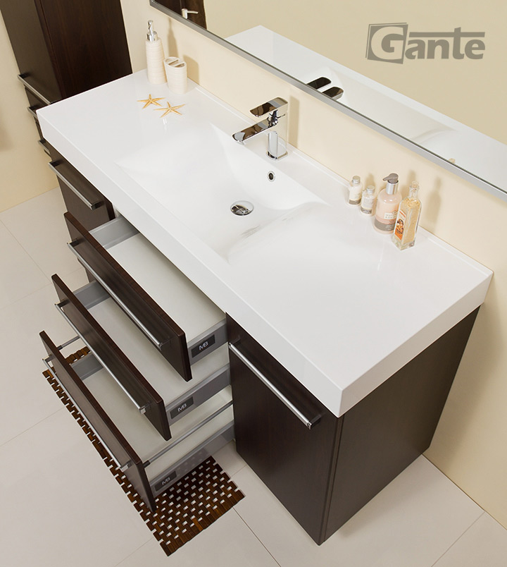 In this line, we have 9 colours for vanity units (antique wood, white, black, red, gray, gray fino, oak, wenge mat, and gloss) plus 4 colours for basins- white, black, red and gray