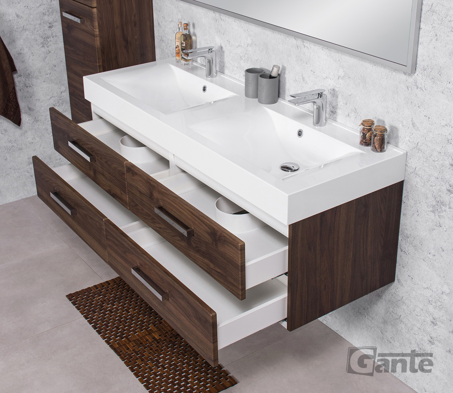 In this line, we have 7 colours for vanity units (antique wood, white, black, red, gray, oak, wenge matt) plus 2 colours for basins- white and black.