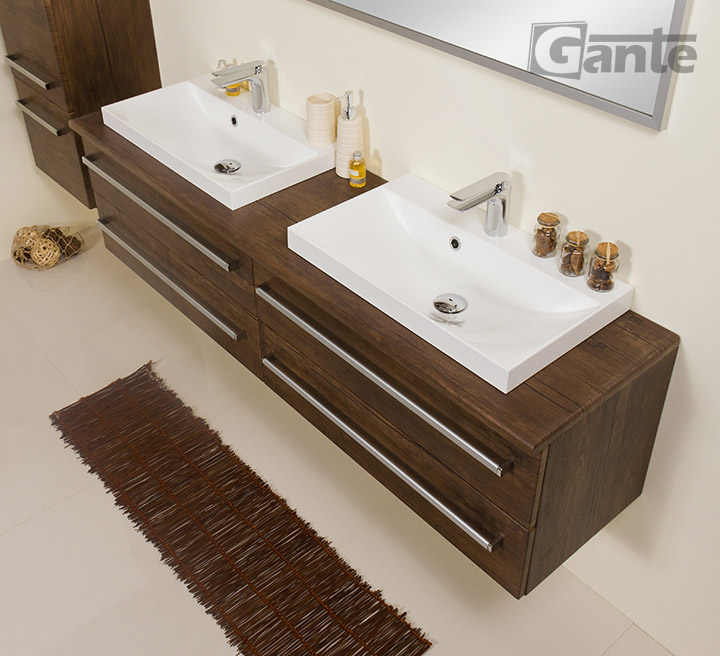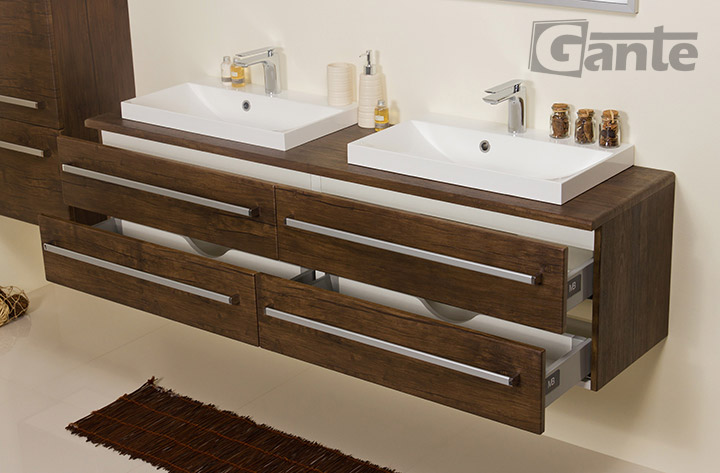 In this line, we have 7 colours for vanity units (antique wood, white, black, red, gray, oak, wenge matt) plus 4 colours for basins- white, black, red and gray