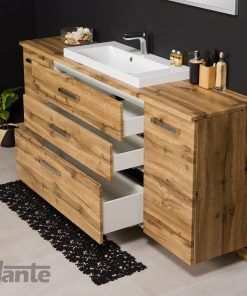 FOCUS is our main line of vanity units. Simple in form yet with endless possibilities. The ergonomic aluminum handle combines a modern accent with classic elegance in the furniture. Various basins shapes emphasize the distinctive design of the furniture. Furniture from the FOCUS line is made of MDF covered with high-quality furniture foil, thanks to which bathroom furniture has increased resistance to moisture. The cabinets are equipped with practical shelves and storage drawers. A wide range of colors and sizes allows you to adjust the furniture to each bathroom. In this line, you have a choice of single and double and triple drawers vanity units in all typical widths plus shelves, cabinets, tall storage units, mirrors, and others.