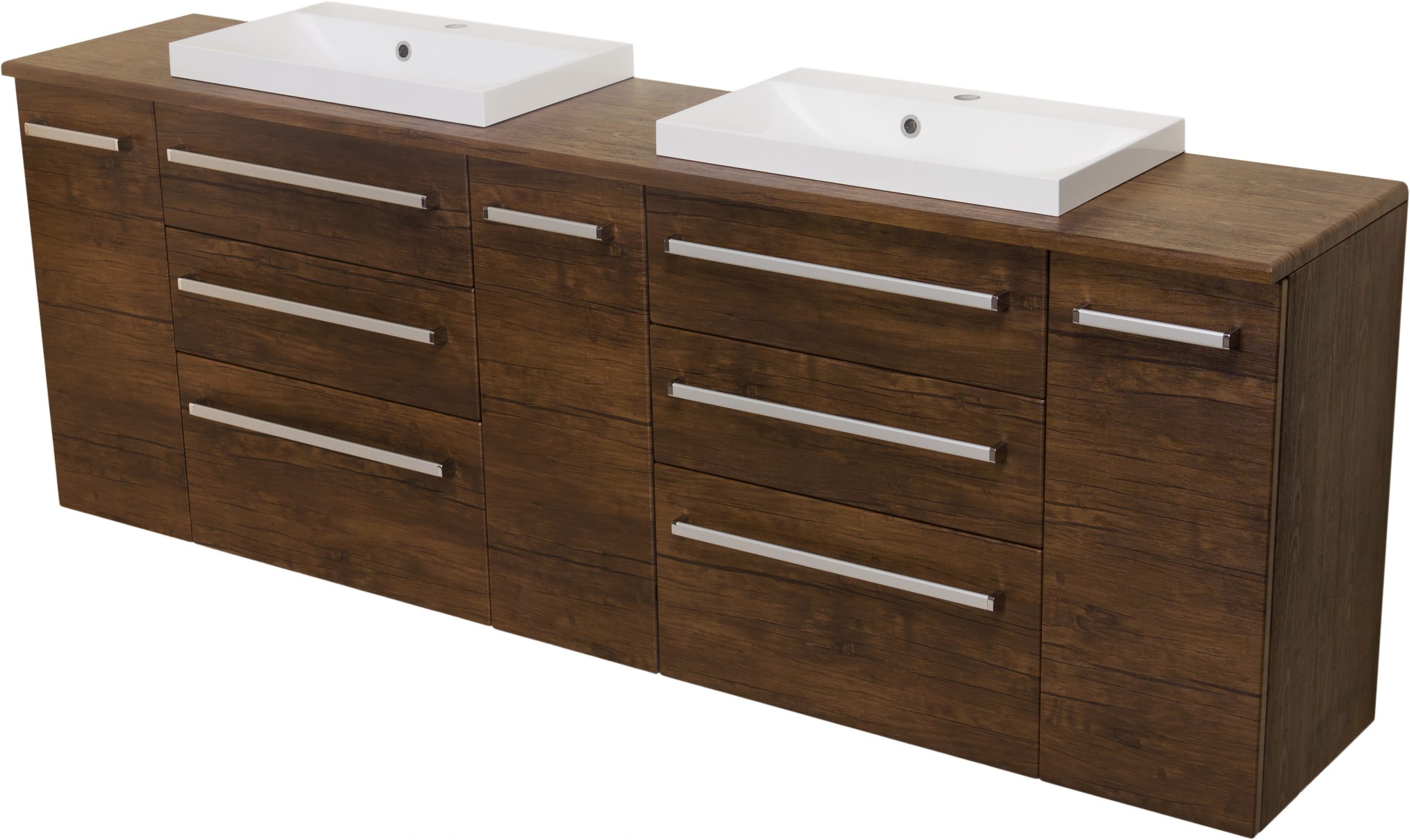 In this line, we have 7 colours for vanity units (antique wood, white, black, red, gray, oak, wenge mat) plus 4 colours for basins- white, black, red and gray