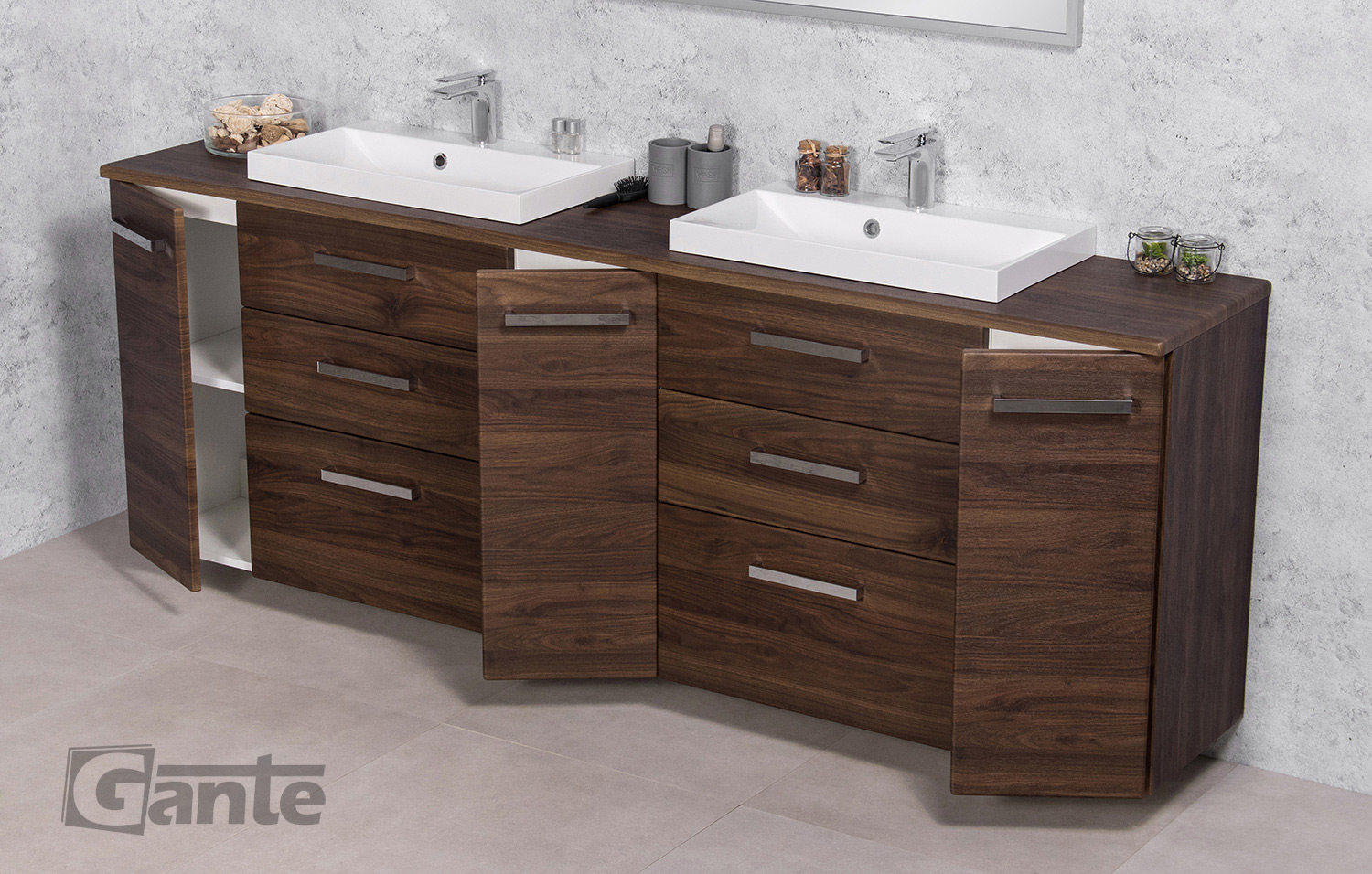 In this line, we have 7 colours for vanity units (antique wood, white, black, red, gray, oak, wenge mat) plus 4 colours for basins- white, black, red and gray