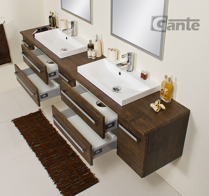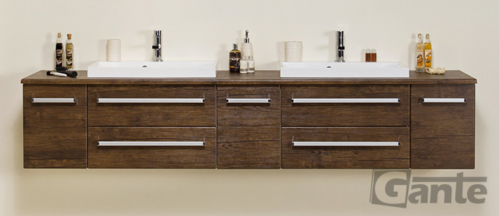 In this line, we have 7 colours for vanity units (antique wood, white, black, red, gray, oak, wenge matt) plus 4 colours for basins- white, black, red and gray