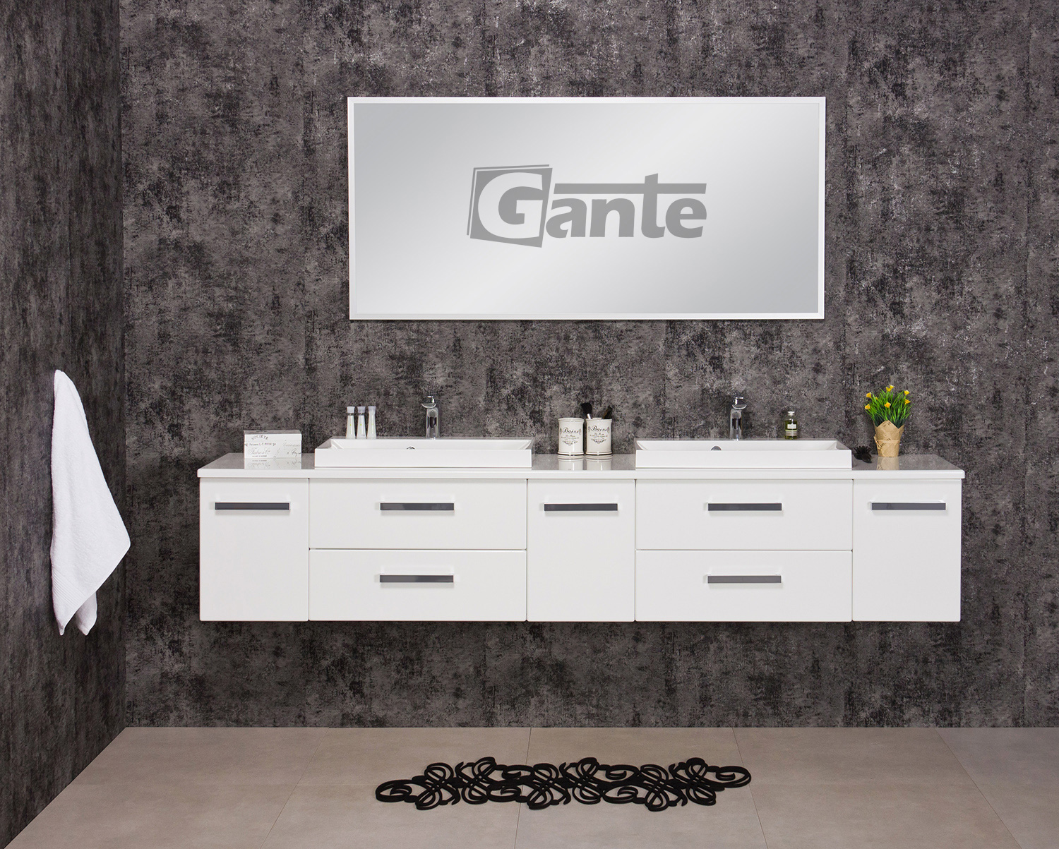 In this line, we have 7 colours for vanity units (antique wood, white, black, red, gray, oak, wenge matt) plus 2 colours for basins- white and black.