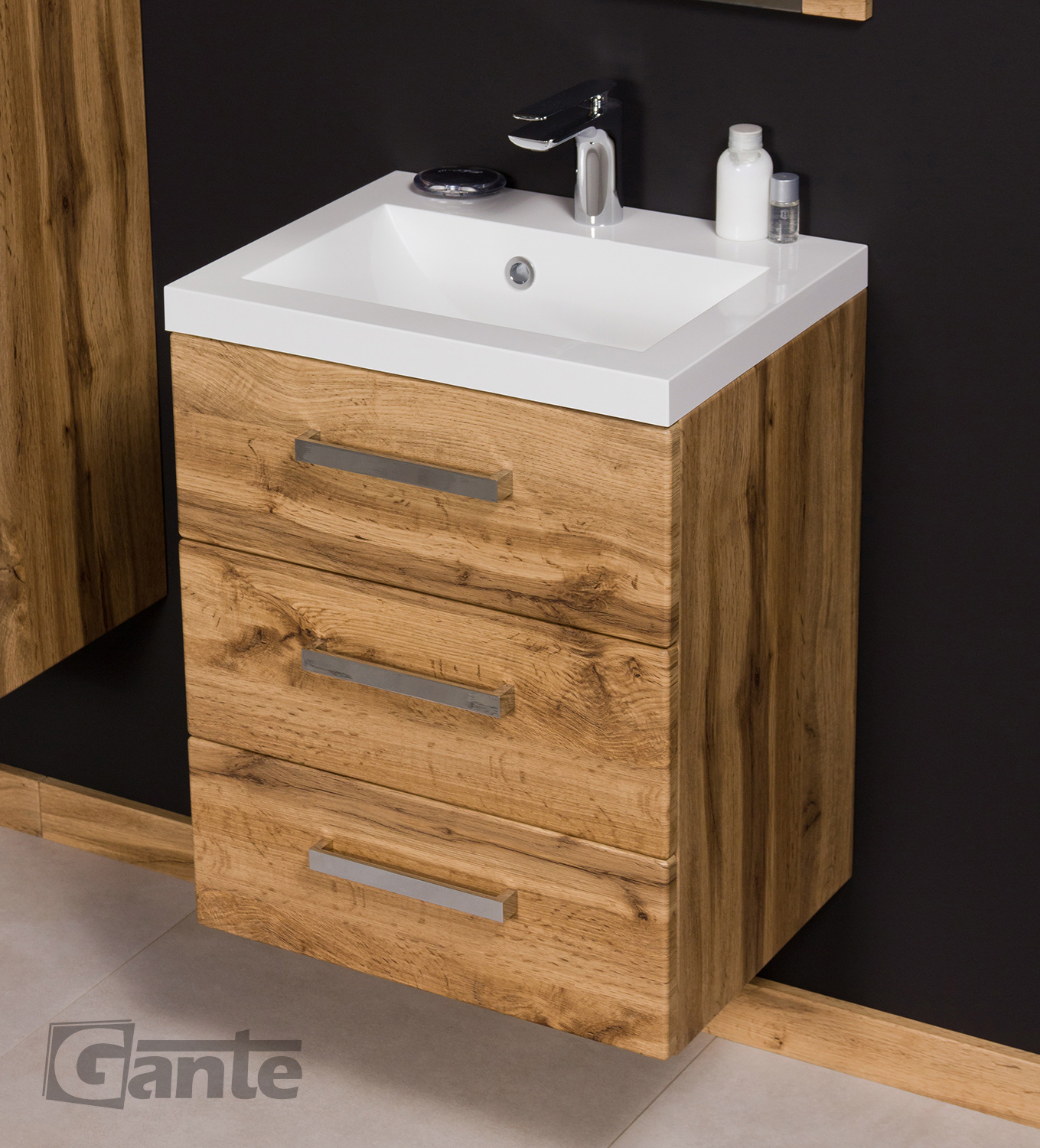 In this line, we have 7 colours for vanity units (antique wood, white, black, red, gray, oak, wenge matt) plus 2 colours for basins- white and black.