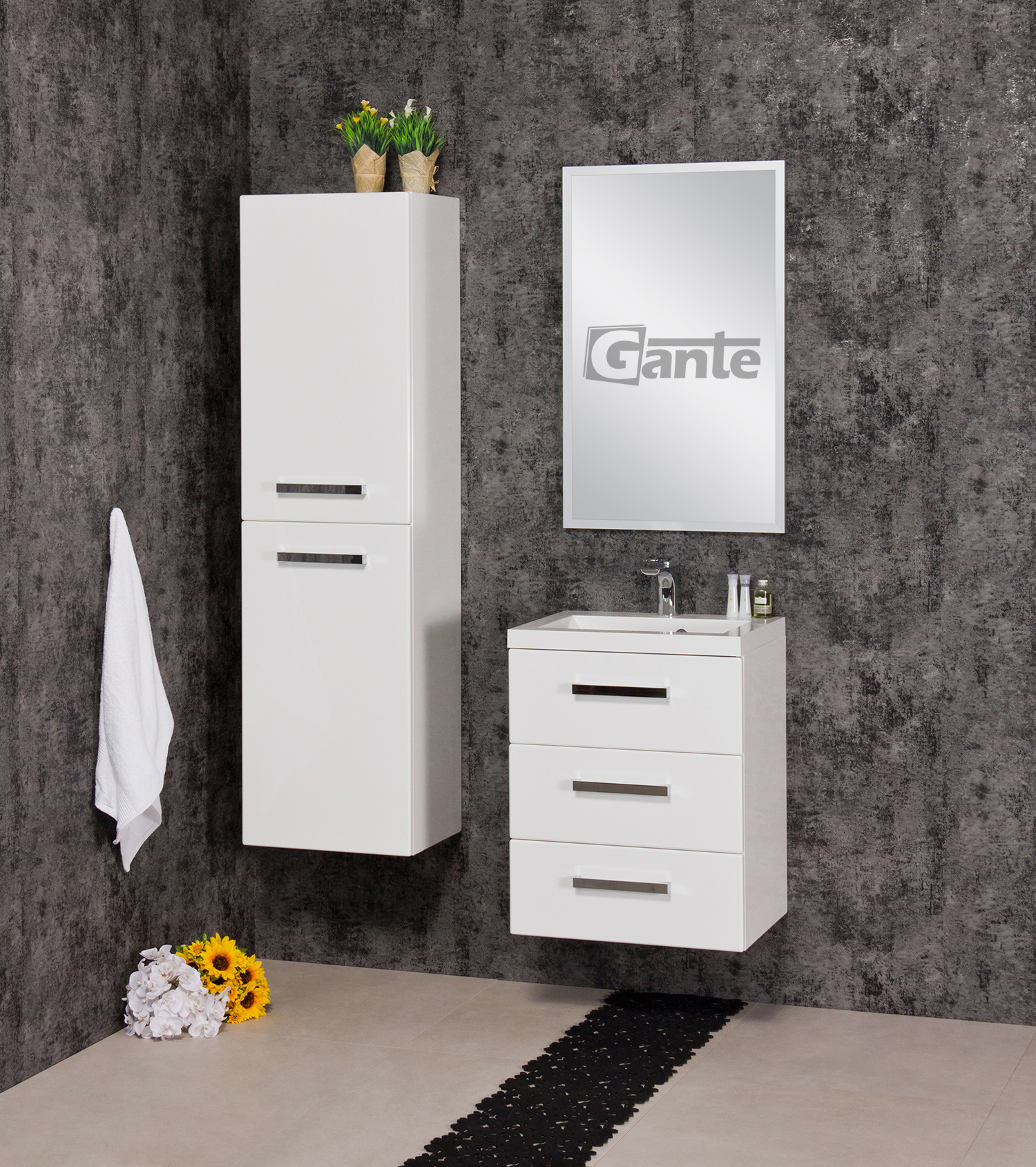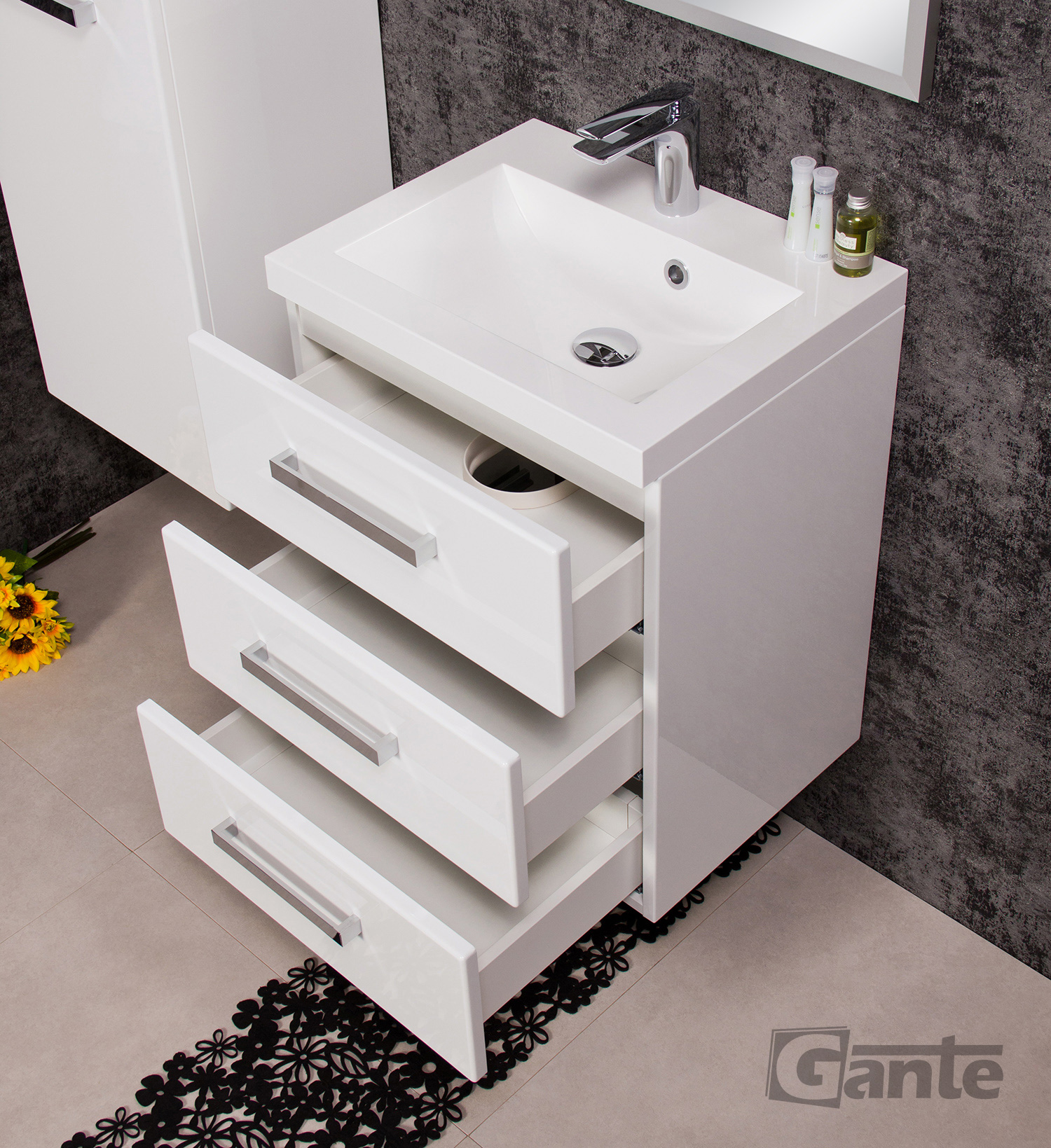 FOCUS is our main line of vanity units. Simple in form yet with endless possibilities. The ergonomic handle combines a modern accent with classic elegance in the furniture. Various basins shapes emphasize the distinctive design of the furniture. Furniture from the FOCUS line is made of MDF covered with high-quality furniture foil, thanks to which bathroom furniture has increased resistance to moisture. The cabinets are equipped with practical shelves and storage drawers. A wide range of colors and sizes allows you to adjust the furniture to each bathroom. In this line, you have a choice of single, double and triple drawers vanity units in all typical widths plus shelves, cabinets, tall storage units, mirrors, and others.