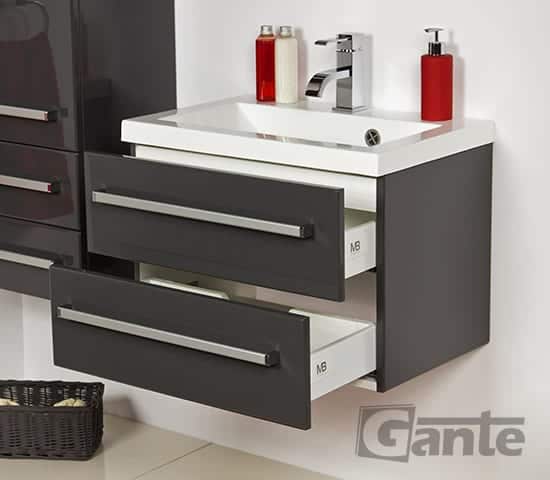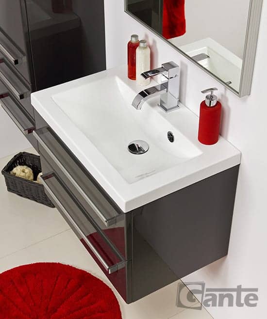 In this line, we have 9 colours for vanity units (antique wood, white, black, red, gray, gray fino, oak, wenge mat, and gloss) plus 4 colours for basins- white, black, red and gray