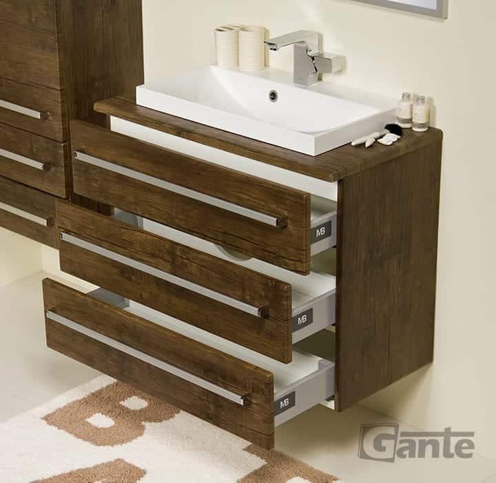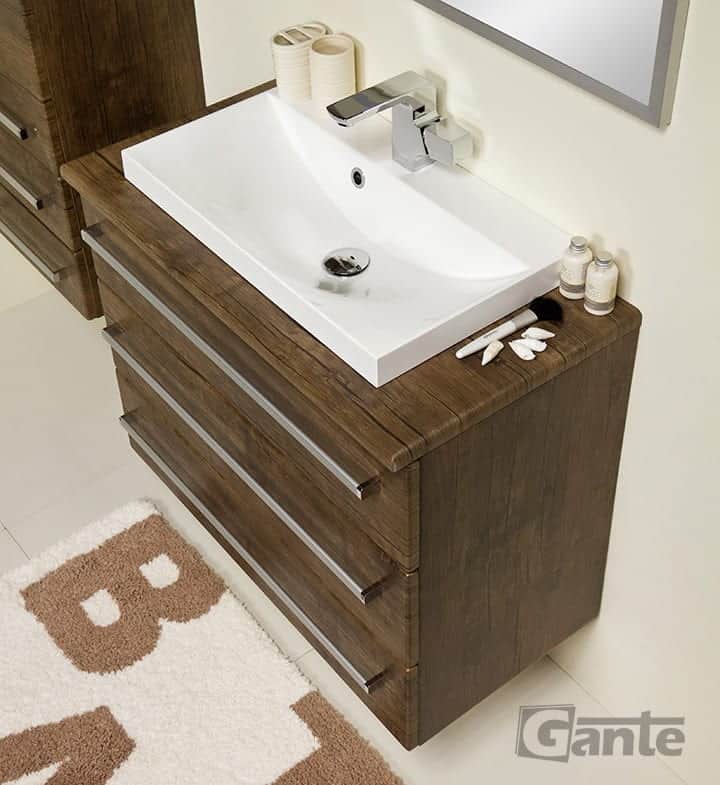 In this line, we have 7 colours for vanity units (antique wood, white, black, red, gray, oak, wenge matt) plus 4 colours for basins- white, black, red and gray