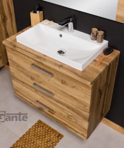 In this line, we have 7 colours for vanity units (antique wood, white, black, red, gray, oak, wenge matt) plus 2 colours for basins- white and black.