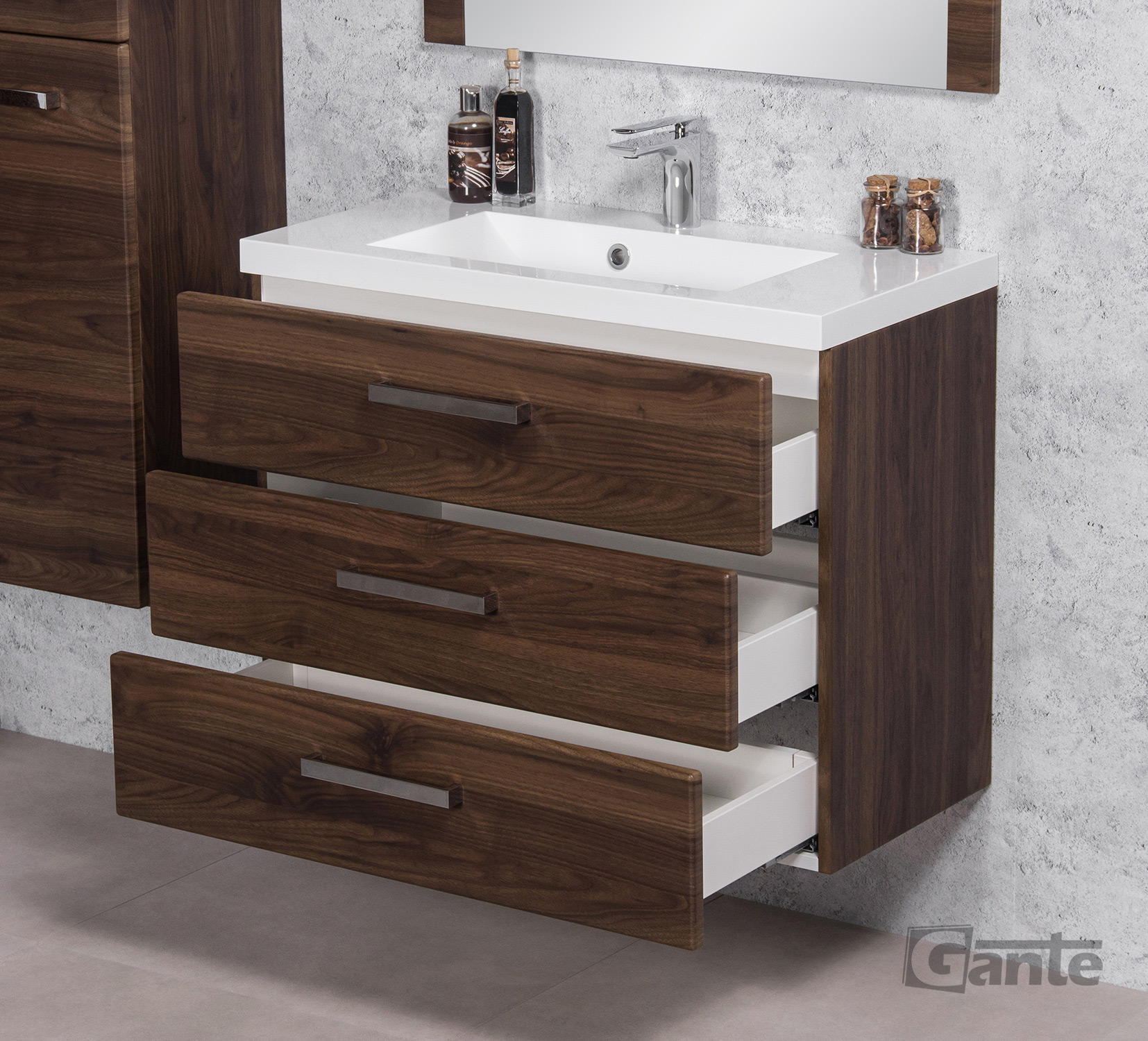 In this line, we have 7 colours for vanity units (antique wood, white, black, red, gray, oak, wenge matt) plus 2 colours for basins- white and black.