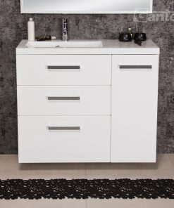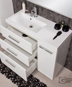 FOCUS is our main line of vanity units. Simple in form yet with endless possibilities. The ergonomic handle combines a modern accent with classic elegance in the furniture. Various basins shapes emphasize the distinctive design of the furniture. Furniture from the FOCUS line is made of MDF covered with high-quality furniture foil, thanks to which bathroom furniture has increased resistance to moisture. The cabinets are equipped with practical shelves and storage drawers. A wide range of colors and sizes allows you to adjust the furniture to each bathroom. In this line, you have a choice of single, double and triple drawers vanity units in all typical widths plus shelves, cabinets, tall storage units, mirrors, and others.