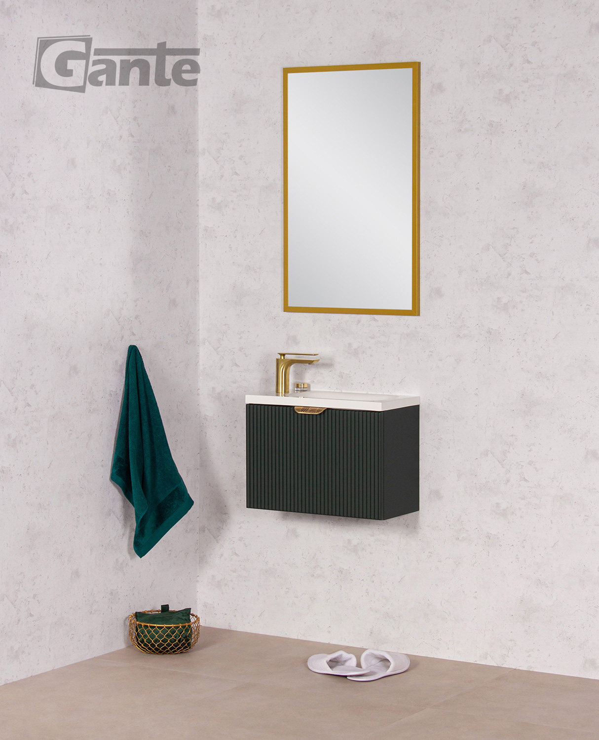 Bathroom furniture from the Fresco Colors collection is distinguished by its color palette. The furniture in this series is available in seven matte colors: black, white, powder pink, bottle green, navy blue, gray and natural oak, so we assure you that even the most demanding investor will have plenty to choose from. The Fresco collection was created mainly for smaller bathrooms and toilets, where every centimeter is worth its weight in gold. Simple and uncomplicated shapes are designed in such a way as to use their internal space to the maximum. The fronts of the cabinets are decorated with symmetrical vertical panels and, depending on the choice, gold or black edge handles. The main idea of the entire project is, above all, aesthetic functionality. Thanks to the use of hinged doors, the cabinets can accommodate even larger containers of cosmetics or cleaning products, because access to the interior of the cabinet is easy and convenient. The use of modern actuators makes opening and closing very smooth and almost silent. The best quality materials were used to produce Fresco bathroom furniture, which extends the durability and operational period while maintaining the unchanged appearance and aesthetics. The decorative foil that protects the MDF furniture board makes all elements of the set extremely resistant to moisture. These small, but very ergonomic and practical pieces of furniture will change the decor of any modern bathroom.