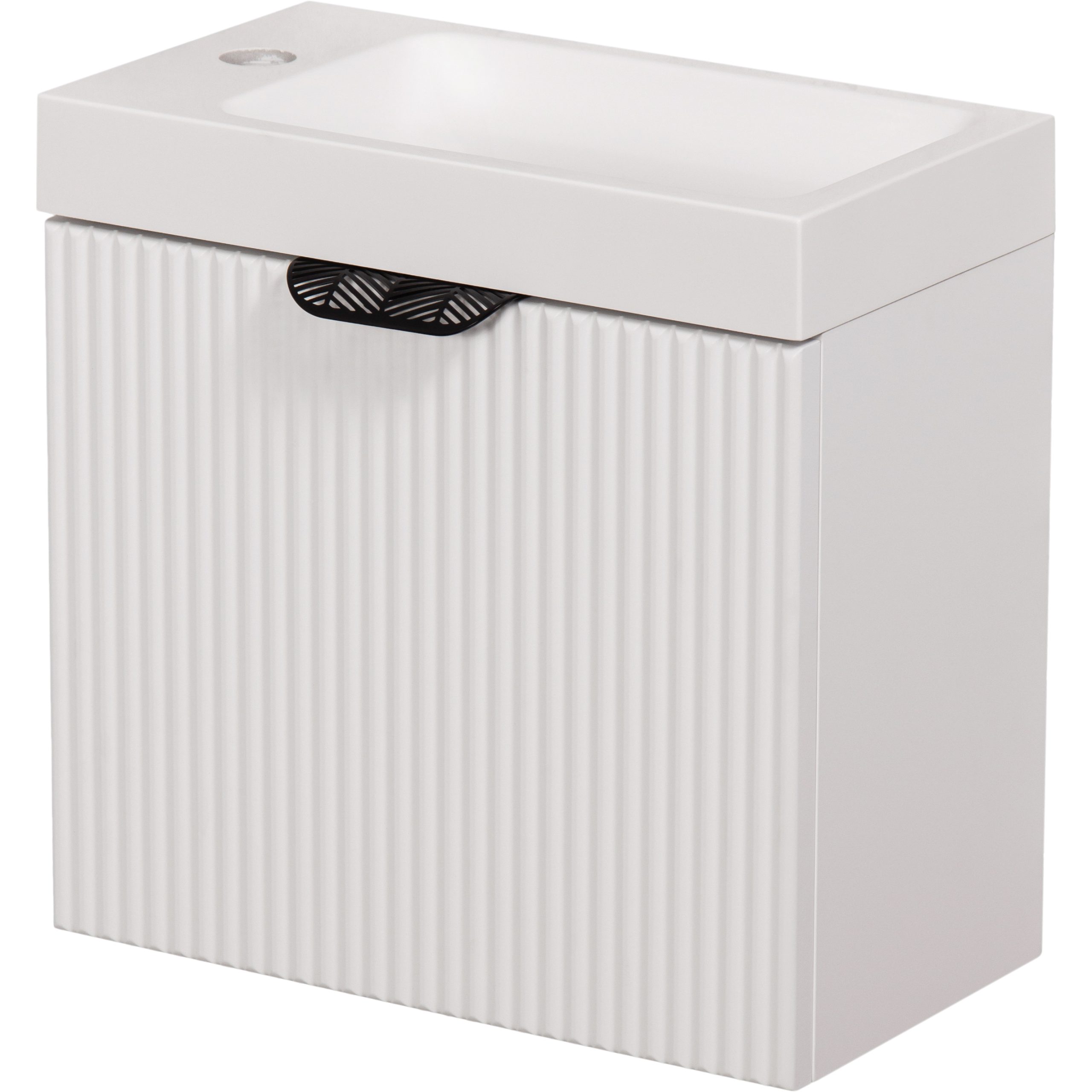 Bathroom furniture from the Fresco Colors collection is distinguished by its color palette. The furniture in this series is available in seven matte colors: black, white, powder pink, bottle green, navy blue, gray and natural oak, so we assure you that even the most demanding investor will have plenty to choose from. The Fresco collection was created mainly for smaller bathrooms and toilets, where every centimeter is worth its weight in gold. Simple and uncomplicated shapes are designed in such a way as to use their internal space to the maximum. The fronts of the cabinets are decorated with symmetrical vertical panels and, depending on the choice, gold or black edge handles. The main idea of the entire project is, above all, aesthetic functionality. Thanks to the use of hinged doors, the cabinets can accommodate even larger containers of cosmetics or cleaning products, because access to the interior of the cabinet is easy and convenient. The use of modern actuators makes opening and closing very smooth and almost silent. The best quality materials were used to produce Fresco bathroom furniture, which extends the durability and operational period while maintaining the unchanged appearance and aesthetics. The decorative foil that protects the MDF furniture board makes all elements of the set extremely resistant to moisture. These small, but very ergonomic and practical pieces of furniture will change the decor of any modern bathroom.