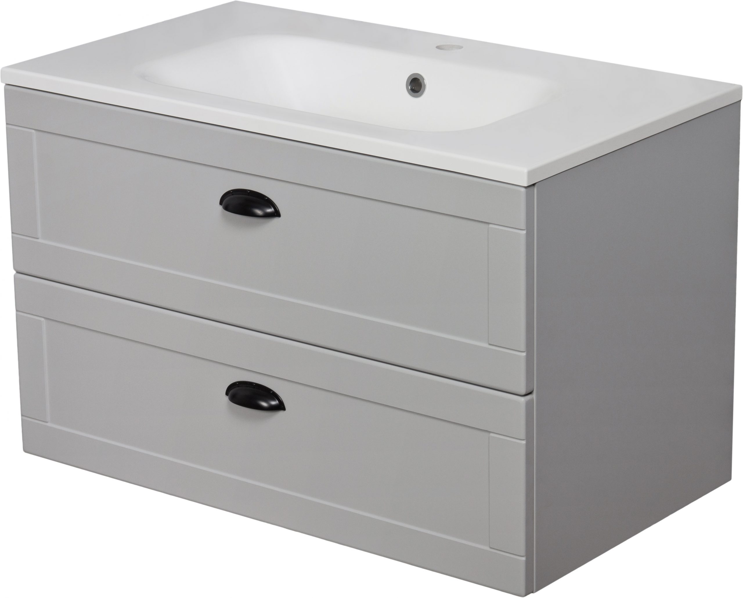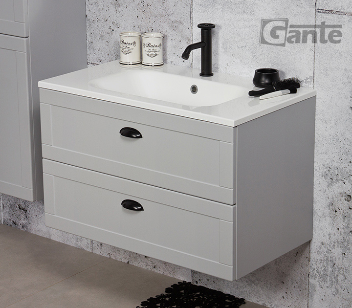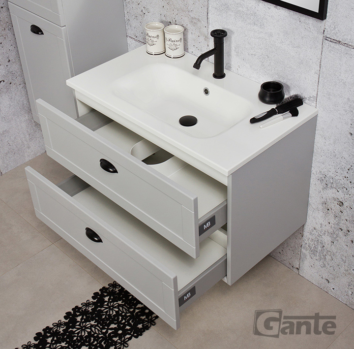 Grend is a line of bathroom furniture inspired by simple, classic bathroom furniture. For many decades, models using similar aesthetic solutions have been the core of the most popular collections and today it does not have to change at all. Simple, yet charming shapes with delicate decorative boards on the fronts, artistically interesting, and at the same time very functional division of the cargo space in combination with a modern, matt gray finish is the definition of modern furniture for a practical bathroom. The Grend series also includes comfortable, black handles with a relatively small width. They, in turn, make the entire project visually closer to the present day, while still remaining simple and uncomplicated. A clean aesthetic line has been achieved by combining these cabinets with very traditional and ergonomically designed washbasins.
