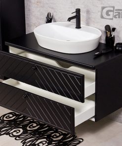 From the technological point of view, these are excellent pieces of furniture. Made of durable, moisture-resistant furniture boards, additionally protected with the highest quality furniture foil. The standard for all doors and drawers is a soft-closing system. The durability of the furniture is increased not only thanks to the use of the highest quality materials, but also due to the high precision of the finish – on the one hand, it is responsible for outstanding aesthetic values, but on the other hand, it also protects the furniture boards against moisture. The interiors have been finished with durable materials, and the simple shape ensures that there is plenty of space for accessories and bathroom utensils. The whole is complemented by properly masked mounting holes and a delicate cutout in the drawer for a low siphon – both aesthetic and increasing functionality. This is definitely furniture for investors who want to add expression to the interiors, but do not agree to quality compromises.