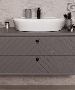The Kodi series is unusual bathroom furniture that is a brilliant marriage of a classic, simple, functional shape with a well-thought-out, modern, but sublime aesthetics. All furniture in the Kodi series is available in five variants of matte finish: black, white, navy blue, gray and green. The deep matt finish fits perfectly with the wide herringbone. This is a classic, but today rare pattern that perfectly breaks the monotony of straight lines, which fits into the atmosphere of modern interiors, but at the same time is not aggressive enough that it will also blend perfectly in a classic bathroom. The whole is complemented by modest furniture handles in the form of knobs – practical and great-looking. White countertop washbasins add incredible charm – it is definitely a modern solution, but thanks to the use of a classic-shaped bowl, it will also be a good choice in stylistically simpler interiors. A nod to modern design is also the use of drawers instead of classic doors in the washbasin cabinets.