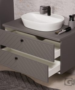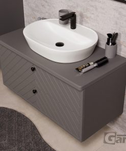 From the technological point of view, these are excellent pieces of furniture. Made of durable, moisture-resistant furniture boards, additionally protected with the highest quality furniture foil. The standard for all doors and drawers is a soft-closing system. The durability of the furniture is increased not only thanks to the use of the highest quality materials, but also due to the high precision of the finish – on the one hand, it is responsible for outstanding aesthetic values, but on the other hand, it also protects the furniture boards against moisture. The interiors have been finished with durable materials, and the simple shape ensures that there is plenty of space for accessories and bathroom utensils. The whole is complemented by properly masked mounting holes and a delicate cutout in the drawer for a low siphon – both aesthetic and increasing functionality. This is definitely furniture for investors who want to add expression to the interiors, but do not agree to quality compromises.