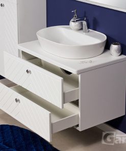 From the technological point of view, these are excellent pieces of furniture. Made of durable, moisture-resistant furniture boards, additionally protected with the highest quality furniture foil. The standard for all doors and drawers is a soft-closing system. The durability of the furniture is increased not only thanks to the use of the highest quality materials, but also due to the high precision of the finish – on the one hand, it is responsible for outstanding aesthetic values, but on the other hand, it also protects the furniture boards against moisture. The interiors have been finished with durable materials, and the simple shape ensures that there is plenty of space for accessories and bathroom utensils. The whole is complemented by properly masked mounting holes and a delicate cutout in the drawer for a low siphon – both aesthetic and increasing functionality. This is definitely furniture for investors who want to add expression to the interiors, but do not agree to quality compromises.