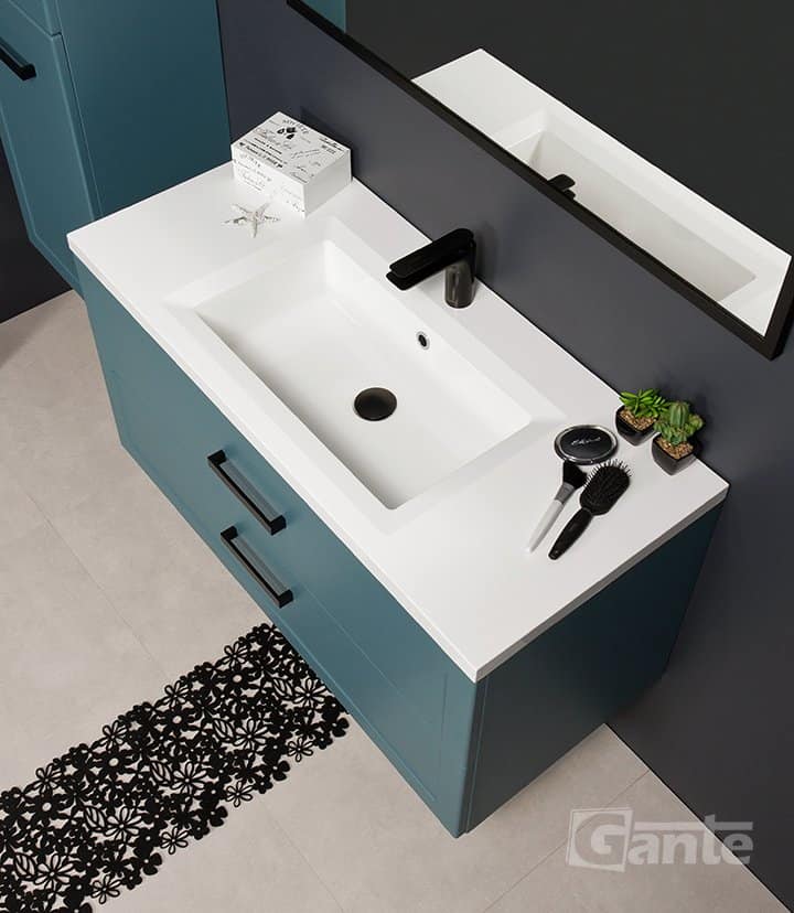 The Meiva line is bathroom furniture inspired by classic finishes – symmetrical, simple in form, with a delicate, rectangular sink. Such aesthetic form has repeatedly gained popularity and today it is highly valued. Structural 3D furniture foil gives the furniture a greater depth, the handles break the monotony, adding a modern character. The 3D structure is only for white units. The furniture in this series is also available in matt colors: black, blue, and green which perfectly blend with more innovative arrangements. The handles are black for units in blue and green, and chrome for white and black units. The milled edge being the dominant decorative element of all furniture in this series has its continuation also in the finish of the sink dedicated to this furniture line.