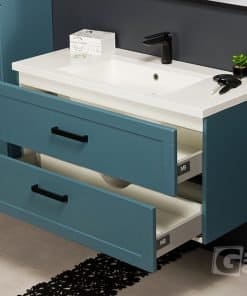 The Meiva line is bathroom furniture inspired by classic finishes – symmetrical, simple in form, with a delicate, rectangular sink. Such aesthetic form has repeatedly gained popularity and today it is highly valued. Structural 3D furniture foil gives the furniture a greater depth, the handles break the monotony, adding a modern character. The 3D structure is only for white units. The furniture in this series is also available in matt colors: black, blue, and green which perfectly blend with more innovative arrangements. The handles are black for units in blue and green, and chrome for white and black units. The milled edge being the dominant decorative element of all furniture in this series has its continuation also in the finish of the sink dedicated to this furniture line.