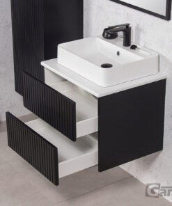 - Basin must be attached to the cabinet using silicone