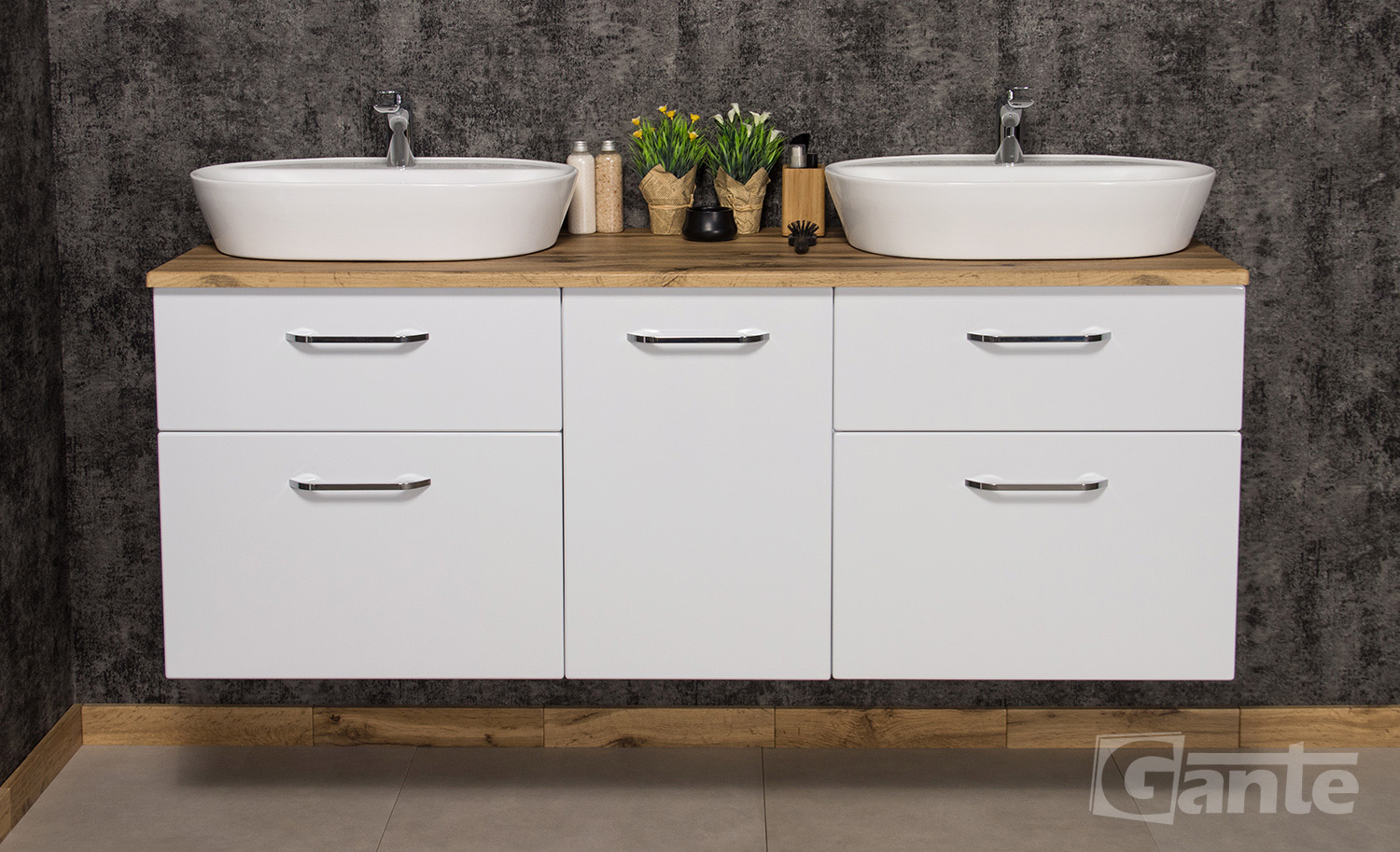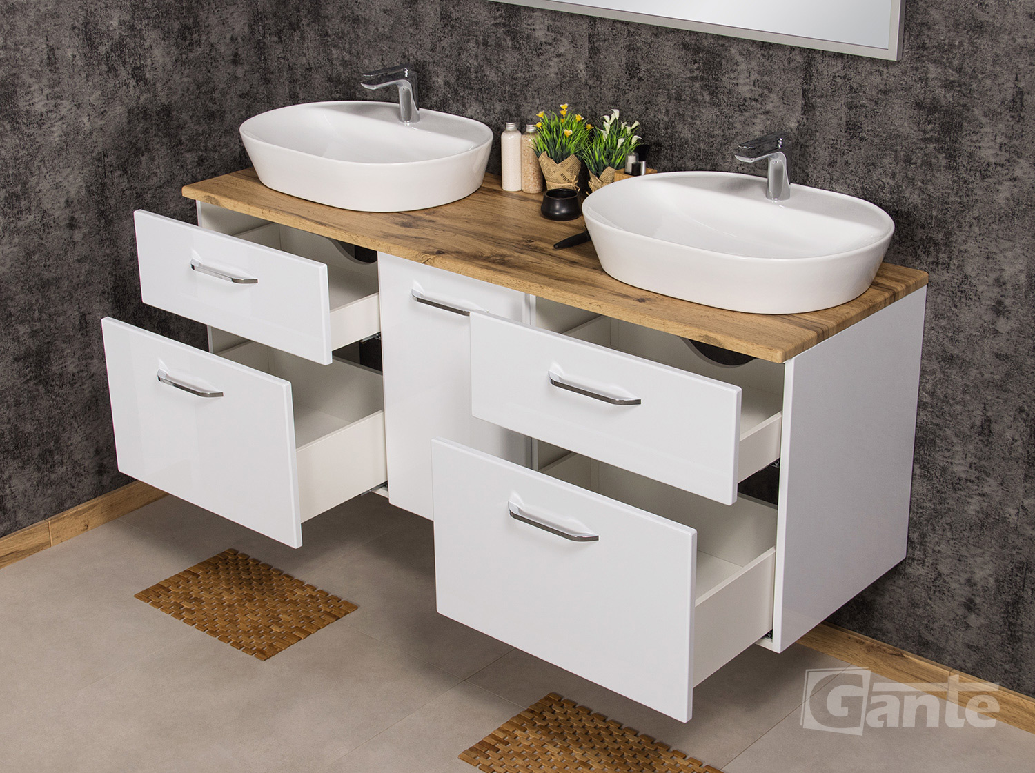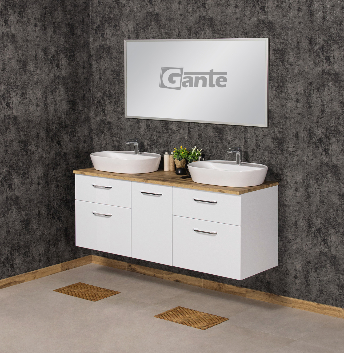- Ceramic basin size: 12.5H x 61W x 46D cm (x2)