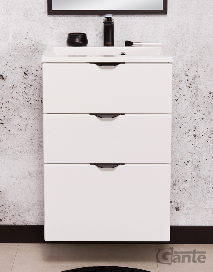 Victa bathroom furniture series is very diverse and, as a result, more likely to be universal than any other style. The whole project is based on simple and functional shapes, which are highly appreciated by users. Minimalist gold (black finish) or black (white finish) handles break the monotony of the lines, but do not disturb the symmetry of the entire design. A perfect veneer creates a smooth, perfect surface. In both color versions, the finish is matte, which adds elegance to it. This series includes built-in sinks, typical for more classic designs, but also allows the cabinets to be placed at a slightly different height than in the case of countertop sinks. The whole design is simple, functionally obvious, but also beautiful thanks to the extraordinary precision of workmanship. The flexibility of the Victa bathroom series is outstanding. In addition, there are several different widths of cabinets in each color variant. Each piece of furniture uses top-class hinges and a soft-closing system. Victa bathroom cabinets and shelves are made of the best boards available on the market with increased resistance to moisture, which are secured with durable and scratch-resistant furniture veneer. The handles are perfectly finished and designed primarily with the user’s comfort in mind. When designing Victa bathroom furniture, we used all the experience gained while working on the previous series to create a furniture set that meets the needs of even the most demanding investors. Bathroom shelves and bathroom cabinets with dedicated sinks will be the heart of every perfect bathroom design and arrangement of a bathroom or home SPA.